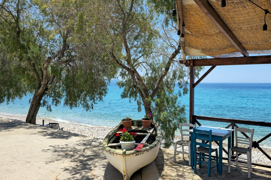 Agios Konstantinos is nog steeds het dorp van weleer. Er is een klein strand en enkele tavernes. Vooral de mogelijkheid van wandelen is hier de aantrekkingskracht. Ook mevrouw Voula kan overigens heerlijk koken. Daar waar we vroeger aan haar keukentafel aanschoven tijdens een bezoek, biedt zij haar kookkunsten nu aan in de taverne aan de overkant van de straat bij Huize Zafiria.