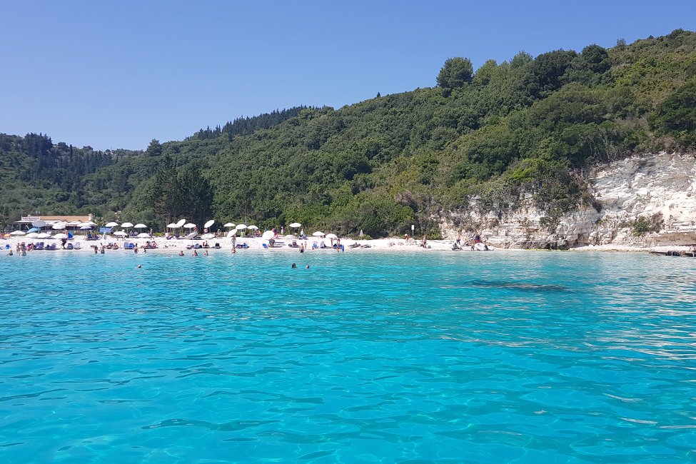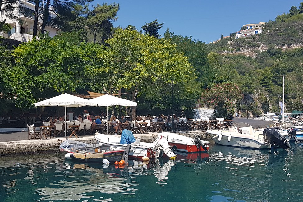 U kunt natuurlijk ook met uw gezelschap voor een eigen boot kiezen en de schipper vaart u waar u wilt. Dit deden wij. Met ons achten hadden we een dag om niet te vergeten. Drank en wat lekkers te eten in de koelbox gelegd en we hadden grote pret. Heerlijk vanaf de boot het water in gedoken. Andreas dook voor ons zee-egels op die we met wat citroen en olie hebben opgepeuzeld. En op Antipaxos hebben we aan het water gevoeld of het wel echt was en geen plaatje dat ons werd voorgeschoteld. Tegenwoordig kunnen 3D printers heel veel en voor je het weet, wordt je voor de gek gehouden! Maar het was echt. Als laatste gingen we aan land in Lakka waar het terras ons voor even wist te binden aan een koud drankje en een lekkere maaltijd. Toen was het tijd om terug te gaan. We waren niet meer tot veel in staat die avond en slapen deden we als roosjes!