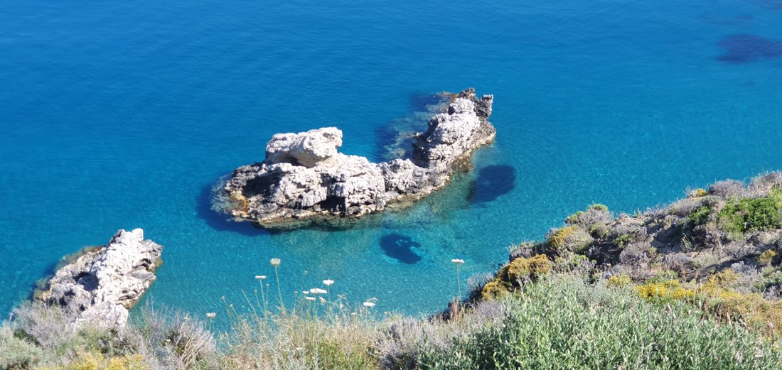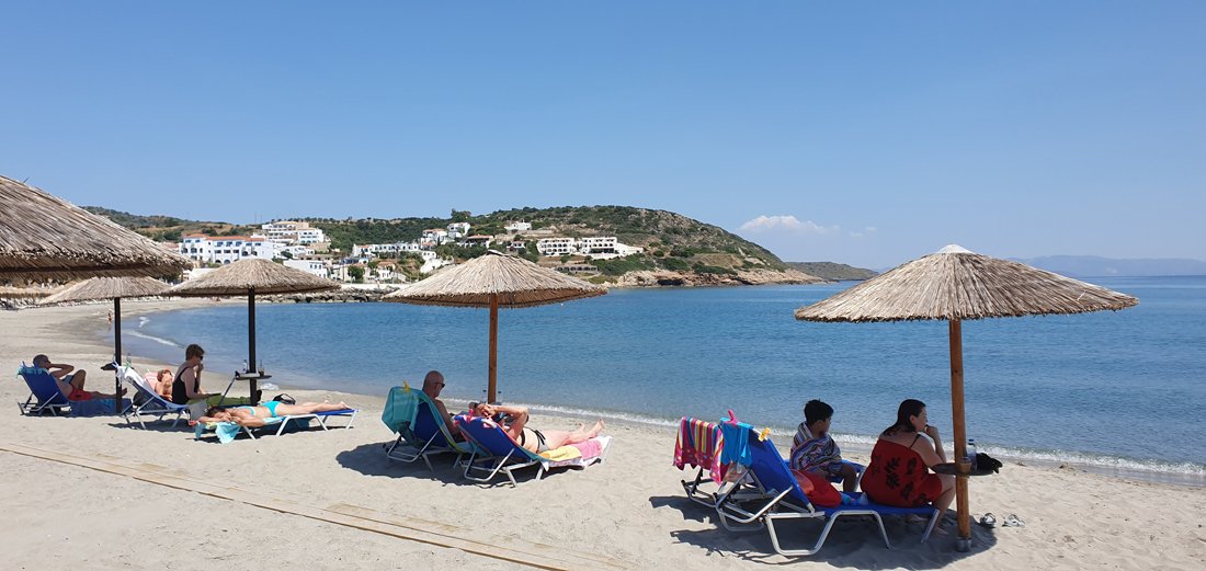 Dit jaar bezocht ik hen in juni en iedereen stond klaar voor de afspraken voor 2020. We waren het snel eens dus bleef er zomaar tijd over om nog eens een rondje over het eiland te maken. Ik had de dag van mijn leven. Ik was echt vergeten hoe mooi Kythira is. Zo reden we naar Kaladi waar mijn mond open viel van het uitzicht. Na een wandeling naar beneden kon een duikje natuurlijk niet uitblijven. Vervolgens door naar Milopotamos waar we bij het uitstappen uit de auto de watervallen al hoorde ruisen. We waren er alleen en de zon viel tussen de boomtoppen door op het water. Wat een prachtige aanblik was dat. De taverne op het plein was klaar om voor ons de lunch te maken. De lekkerste melizanasalata met een een choriatiki en brood, simpel maar o zo lekker. Avlemonas liet zich ook weer van zijn beste kant zien. We waren net op tijd om nog enkele oudere dorpsbewoners in het water te zien gaan, hopende op de werking van de mythe dat baden hier verjonging op zou leveren. Dat liet ik me natuurlijk ook niet ontgaan. Een duikje genomen en daarna op een holletje naar de eerste de beste spiegel. Jonger leek ik niet maar de energie straalde er wel vanaf. Misschien is dat wel wat dit bad met je doet! ’s Avonds werden we verrast door de visser Kyriakos die speciaal voor ons was uitgevaren en zijn vangst had klaar laten maken bij de taverne. Verser dan dit is niet mogelijk.