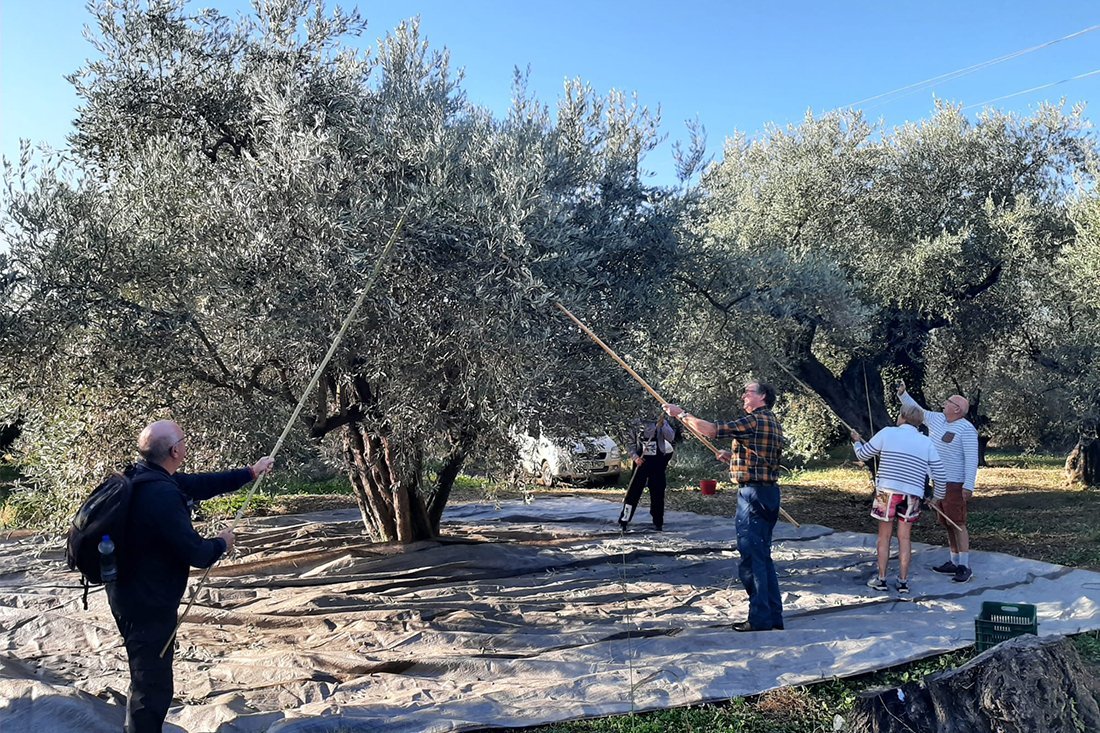 Donderdagochtend nam ik de gasten mee naar de olijfgaard. Ik weet niet of u hetzelfde voelt wanneer u naar een olijfgaard kijkt, maar ik krijg een warm gevoel van innerlijke rust wanneer ik daar ben. Die plaatsen hebben een bijzondere uitstraling, het zonlicht schijnt door de bladeren van de olijfbomen en zorgt voor een magisch schouwspel. Rustig ging ik onder een van de bomen zitten en vertelde met plezier mijn verhaal, het verhaal van de olijf. Over de olijf in de oudheid, de bomen, het telen, het persen en de verschillende soorten olijfolie.