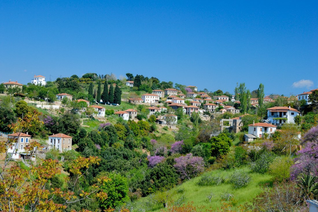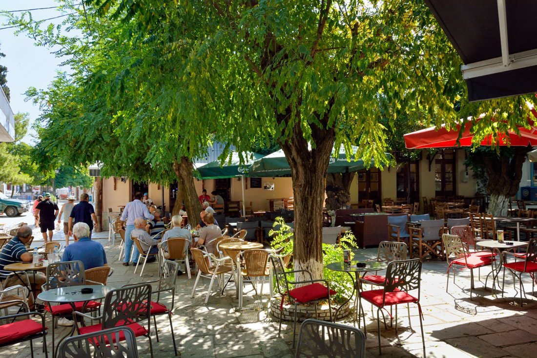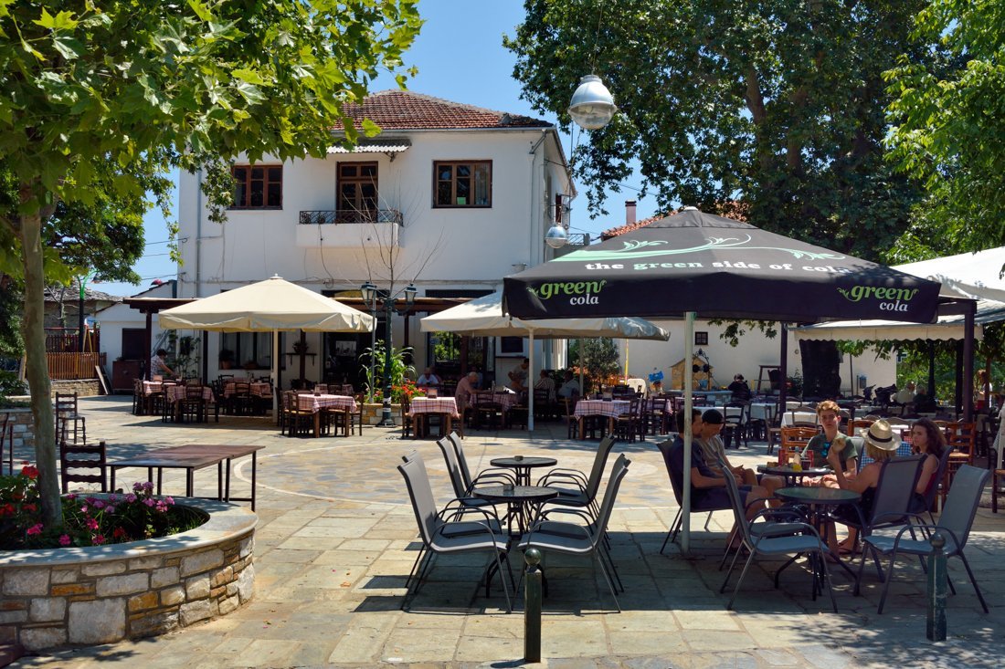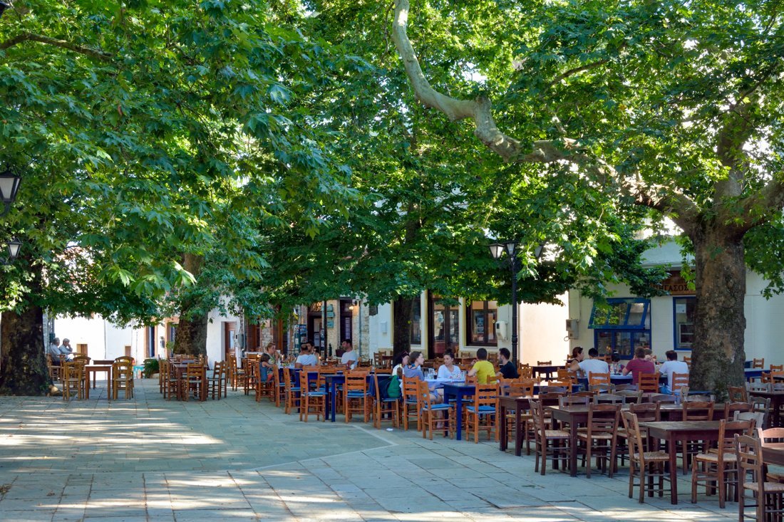 Ik logeerde in Kala Nera, maar ook vanuit Afissos is deze tocht prima te maken. Vertrek bijtijds, want als u overal wilt gaan zitten waar het er leuk of mooi uitziet, komt u tijd te kort. De weg leidt u door het groene landschap van Pilion. De uitlopers van de berg zijn hier duidelijk merkbaar. Echt hoog is het hier niet, maar van hoogteverschil met de kustlijn is zeker sprake. U passeert onder andere het dorp Afetes, dat van de toeristen die Pilion bezoeken totaal geen weet heeft. Maar ons eerste doel is Argalasti. Een typisch Grieks, of misschien wel Piliotisch, stadje in het binnenland van Pilion. Dit is de grootste plaats van dit schiereiland en volledig autonoom. Er is een wekelijkse markt, er is een kerk, een dorpsplein, zelfs een medisch centrum en vooral verschillende authentieke tavernes. De inwoners hoeven feitelijk voor niets naar de grote stad, zoals Volos wel beschouwd wordt. Wandel door de straten, kijk even op het plein met de enorme plataan en karakteristieke woningen met hun fraaie gevels. Maar lang de tijd hebben we hier niet. We moeten door. Langzaam aan begint de trek in een koffie. Daarvoor gaan we naar Lafkos. De mooiste route loopt via de kust, maar voor nu kiezen we voor de snelste en dat is door het binnenland. Auto’s mogen het dorp niet in, dus het is buiten het dorp parkeren. Smalle straatjes brengen u bij het dorpsplein. Hier bevinden zich enkele tavernes en ook het oudste kafenion van Griekenland. Hier is het samen met de lokale bevolking genieten van een perfecte Griekse koffie, maar ook voor een cappuccino kunt u hier terecht. Nu de trek hierin gestild is, zetten we onze tocht voort.