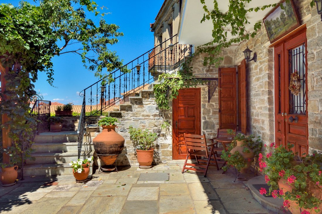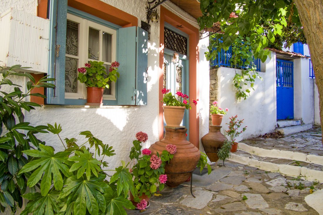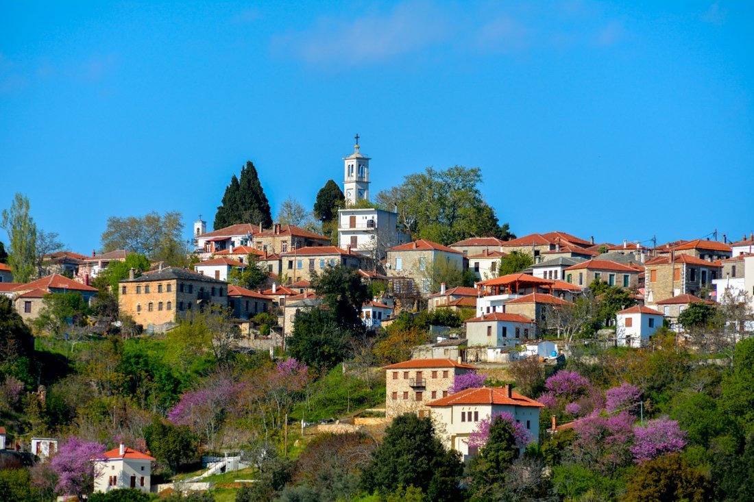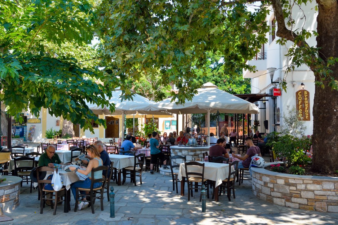 Ik logeerde in Kala Nera, maar ook vanuit Afissos is deze tocht prima te maken. Vertrek bijtijds, want als u overal wilt gaan zitten waar het er leuk of mooi uitziet, komt u tijd te kort. De weg leidt u door het groene landschap van Pilion. De uitlopers van de berg zijn hier duidelijk merkbaar. Echt hoog is het hier niet, maar van hoogteverschil met de kustlijn is zeker sprake. U passeert onder andere het dorp Afetes, dat van de toeristen die Pilion bezoeken totaal geen weet heeft. Maar ons eerste doel is Argalasti. Een typisch Grieks, of misschien wel Piliotisch, stadje in het binnenland van Pilion. Dit is de grootste plaats van dit schiereiland en volledig autonoom. Er is een wekelijkse markt, er is een kerk, een dorpsplein, zelfs een medisch centrum en vooral verschillende authentieke tavernes. De inwoners hoeven feitelijk voor niets naar de grote stad, zoals Volos wel beschouwd wordt. Wandel door de straten, kijk even op het plein met de enorme plataan en karakteristieke woningen met hun fraaie gevels. Maar lang de tijd hebben we hier niet. We moeten door. Langzaam aan begint de trek in een koffie. Daarvoor gaan we naar Lafkos. De mooiste route loopt via de kust, maar voor nu kiezen we voor de snelste en dat is door het binnenland. Auto’s mogen het dorp niet in, dus het is buiten het dorp parkeren. Smalle straatjes brengen u bij het dorpsplein. Hier bevinden zich enkele tavernes en ook het oudste kafenion van Griekenland. Hier is het samen met de lokale bevolking genieten van een perfecte Griekse koffie, maar ook voor een cappuccino kunt u hier terecht. Nu de trek hierin gestild is, zetten we onze tocht voort.