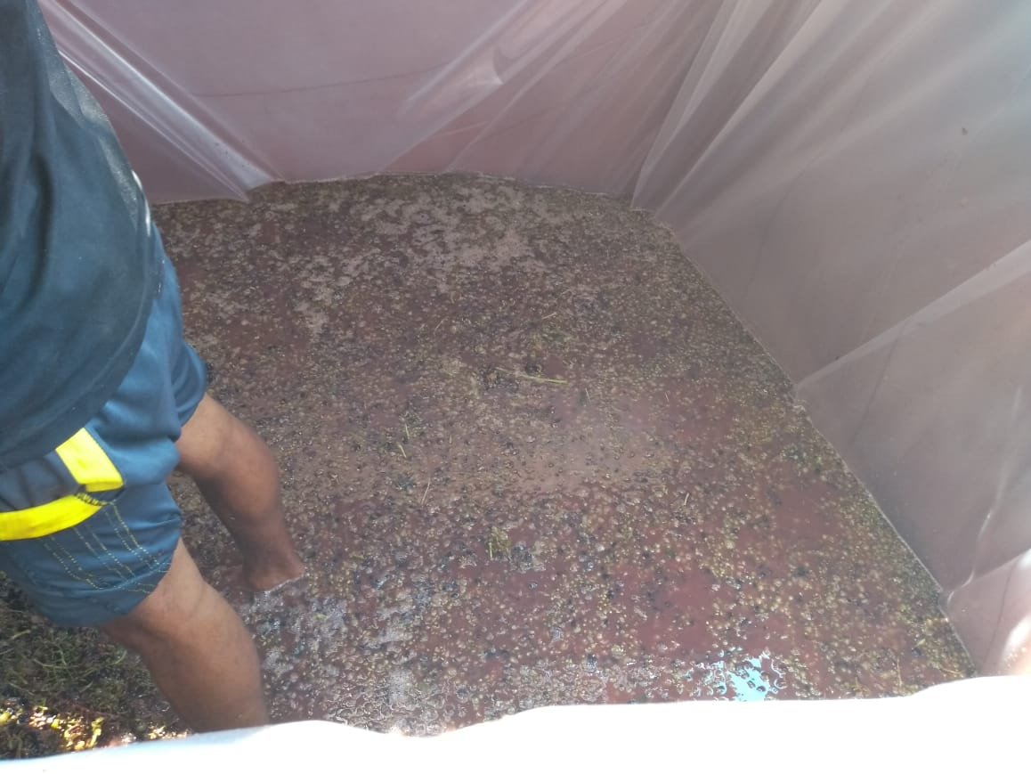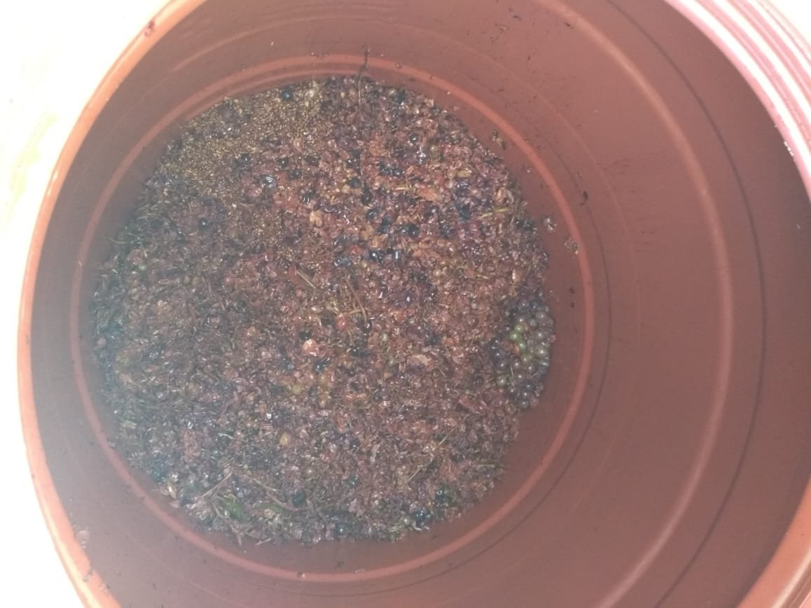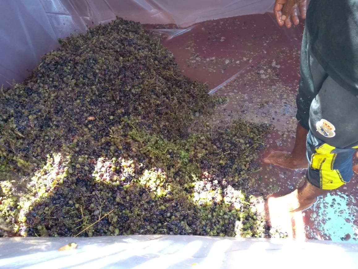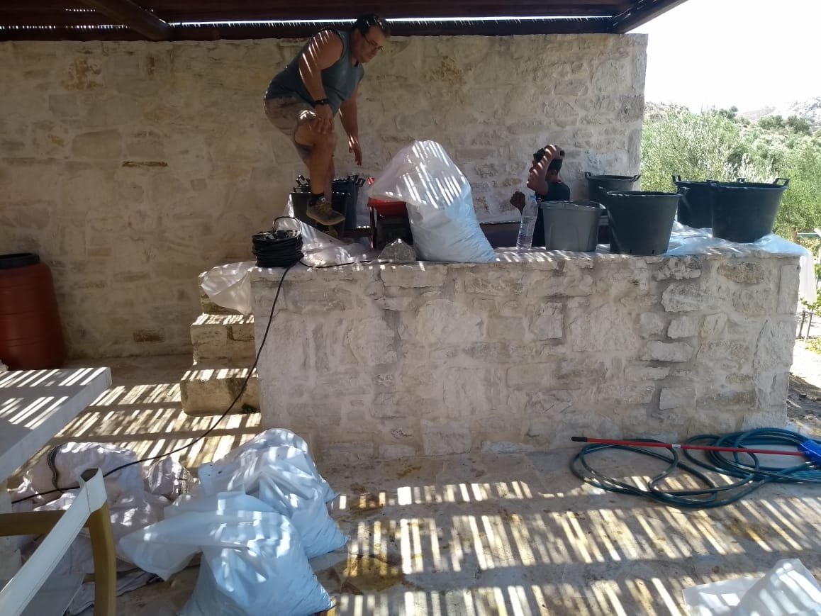 Rondom de villa's Dafni en Lemonia in Lefkogia op Zuid-Kreta is een grote tuin. Een deel hiervan is sinds enkele jaren begroeid met druivenplanten. Dit jaar waren de planten voldoende gegroeid en hadden een goede oogst om een poging te doen er wijn van te maken. De witte en blauwe druiven zijn samengevoegd en we hopen op een smakelijke rosé.