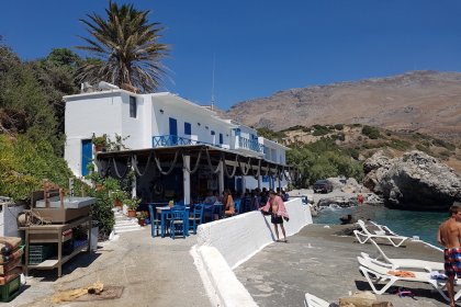 De ultieme plek om een middag door te brengen. Goed eten bij de taverne van Agia Fotini. Zonder auto kom je er niet, maar wat een heerlijkheid als de weg eenmaal gevonden is. Het is goed dat het alleen bij de Grieken bekend is, daarom is het ook zo bijzonder gebleven. Het heldere water nodigt uit en de trek kan hier goed gestild worden. Maar tegen niemand vertellen, dan blijft het tussen ons!