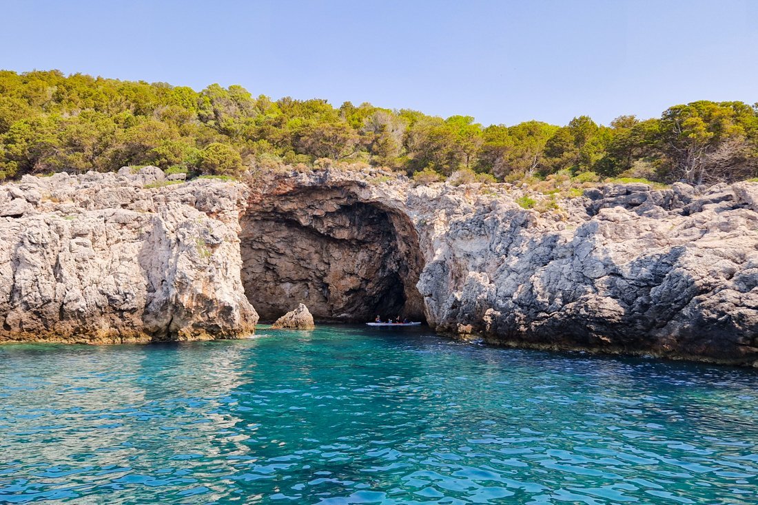 We keerden terug richting Sivota en bezochten de eilandjes die hier voor de kust liggen, Agios Nikolaos en Mourtos. De zeestraat die ertussenin ligt, herbergt een van de mooiste stranden van de omgeving. Deze baai wordt wel de Blue Lagoon of Piscina genoemd, wat zwembad betekent. U kunt zich hier vast wel iets bij voorstellen, hoe het water hier is! Niet voor niets is dit een van de drukst bezochte stranden rondom Sivota. Vervolgens zetten we de tocht voort langs de zuidelijke kustlijn.