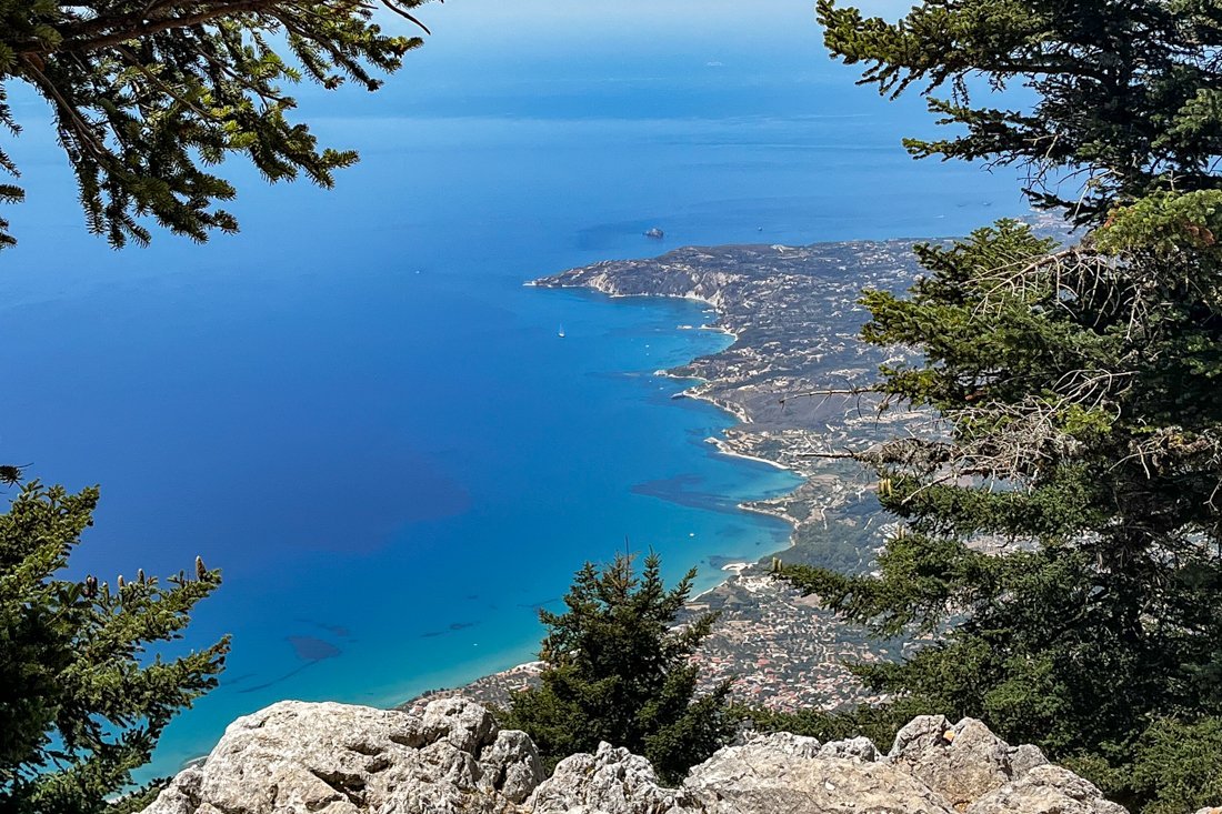 Als je goed ter been bent ga dan ook zeker naar het allerhoogste punt op Kefalonia, de Aenos National Park. Je kan helemaal met de auto naar boven rijden, de weg is prima te rijden, zelfs met een klein autootje, zeker de moeite waard om gezien te hebben. Als je helemaal boven bent, dan loop je ongeveer nog 2 km naar het hoogste punt. Trek echt goede schoenen aan en niet met slippers. Op dit hoogste punt kan je helemaal 360 graden van je af kijken!