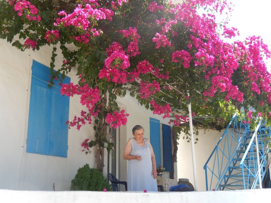 Wat een ongelooflijke gastvrijheid hadden we genoten, want waar vind je nog dat een alleenstaande oude vrouw 3 vreemde buitenlanders zomaar uitnodigt op haar terras? Volgens ons is dat echt Grieks en mede een reden om na minstens 20 keer Griekenland er steeds weer terug te keren!