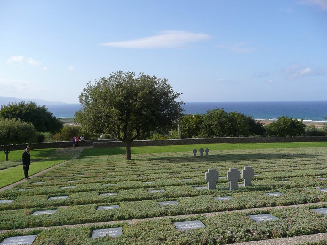 In de maand mei zijn er de herdenkingen van de Tweede Wereldoorlog. Dhr. Katsikoulakis las het voor uit zijn krant. Herdenking zondag in Malemè en Souda. 4465 Duitsers vielen er bij de Slag om Kreta. Bij de lunch zagen we de militairen in taverne de Molen in Kamisiana. Aan het eind van de middag in uniform op de begraafplaats in Malemè wat tegen de heuvel aanligt met uitzicht op zee en de olijfbomen met cicaden-gezang. Een straaljager bracht een salut. De tijm bloeide paars!