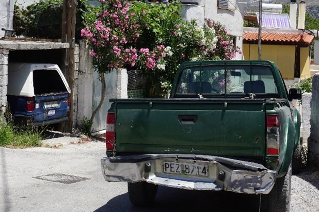 Het is een warme dag. In ons huurautootje met airco rijden we door het bergland van Zuid-Kreta. Het weggetje is smal. Kunnen we een tegemoetkomende auto wel voorbij? Maar die komt helemaal niet, we zijn alleen op de wereld. Waar zijn al die toeristen? De enigen die we tegenkomen zijn wat locals in hun pick-up(je) of op een brommertje.Dan zie ik een eenvoudig huisje, de muren onlangs nog wit gesaust. Boven de deur staat in het Grieks Kafenion. Jaren geleden daar al opgeschilderd. Het witsel van de laatste beurt is een beetje over de letters heen gekomen. Maar het is vergane glorie, want er staan slechts een paar stoeltjes en een tafeltje. Ik roep naar Hans: ‘Kijk een Kafenion, maar niet meer in bedrijf zo te zien’.