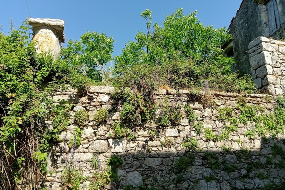 Vanuit zijn winkel moesten we onder een toegangspoort het dorpje verder in door zeer smalle straatjes. Hier kon je eigenlijk alleen wandelen. Het leek of je op een soort binnenplein kwam met zijstraatjes. Enkele huizen waren bewoond, enkele werden gerenoveerd en sommige huizen waren bouwvallen. Een overeenkomst tussen al deze huizen was, dat de stenen uit de oude Griekse, Romeinse en Venetiaanse tijd waren hergebruikt, volgens oud-Grieks gebruik. Omdat er nog best veel over was uit de verschillende perioden, had men deze poorten en muren geïntegreerd in de huidige gebouwen, hetzij als ornament, hetzij als poort, muur of op een andere wijze nuttig gebruik. Het dorpje was eigenlijk één openluchtmuseum, maar je moet er wel eerst op geattendeerd worden. We zagen o.a. twee kerkjes (Panagia kerk en een kerkje gebouwd op de tempel van Dias) en heel veel hergebruikte delen van oude beschavingen.