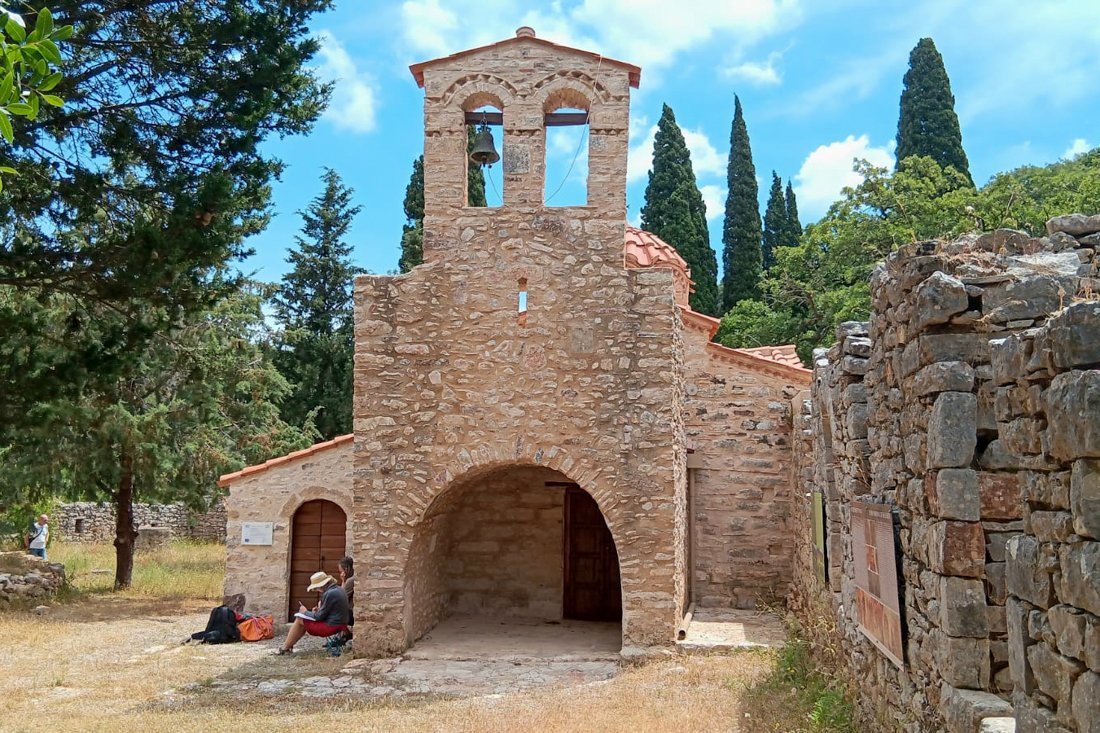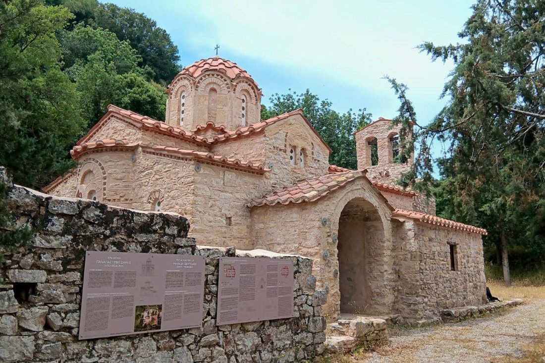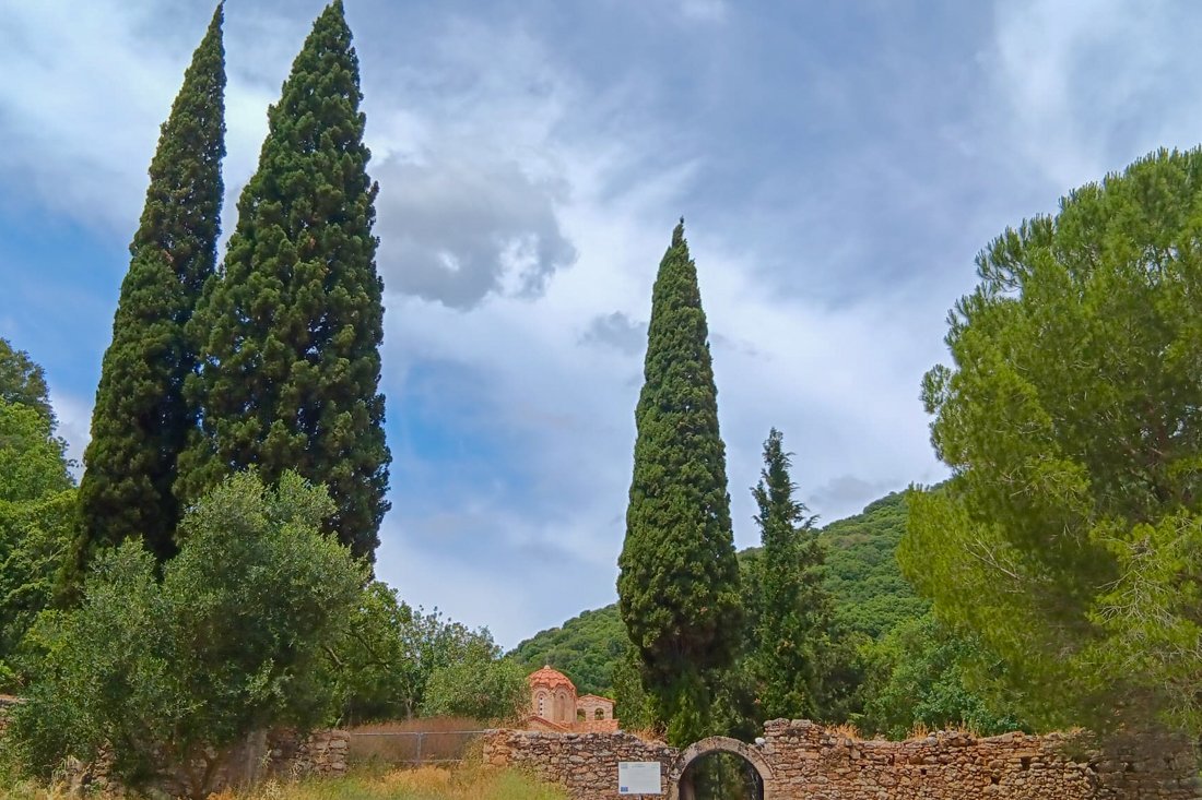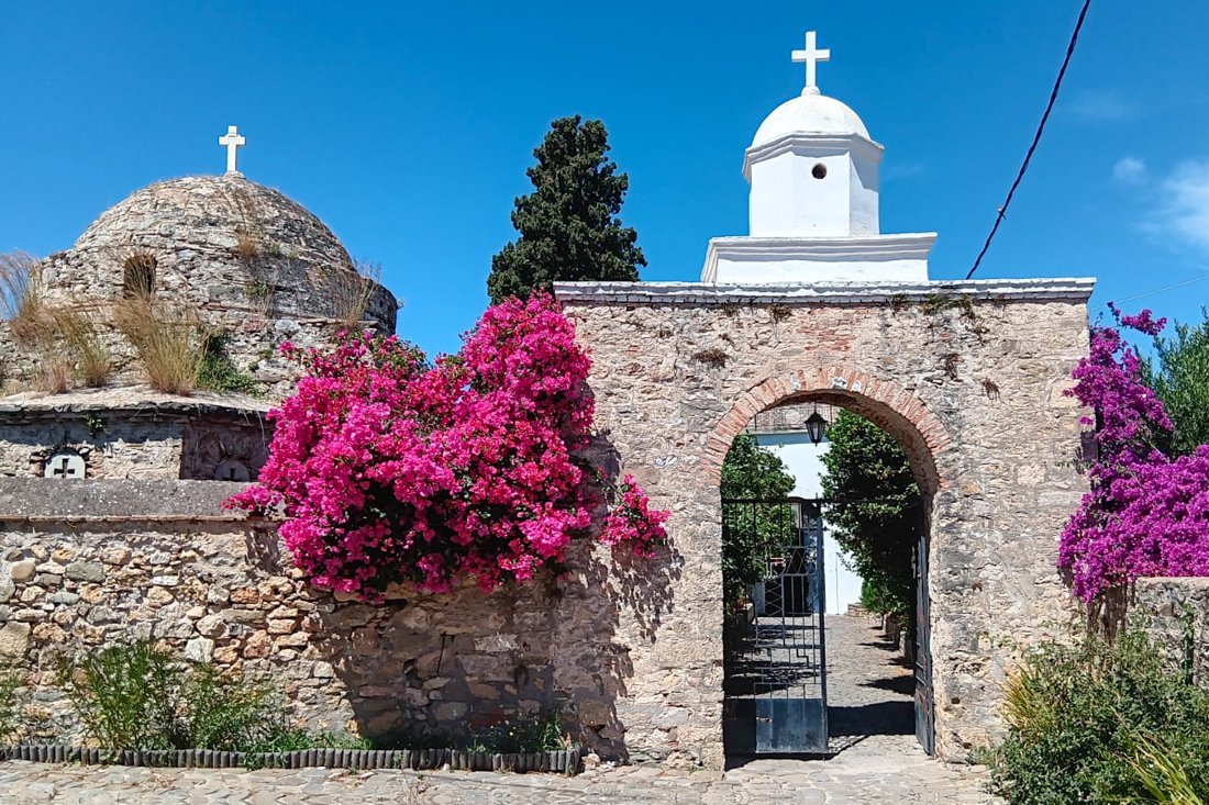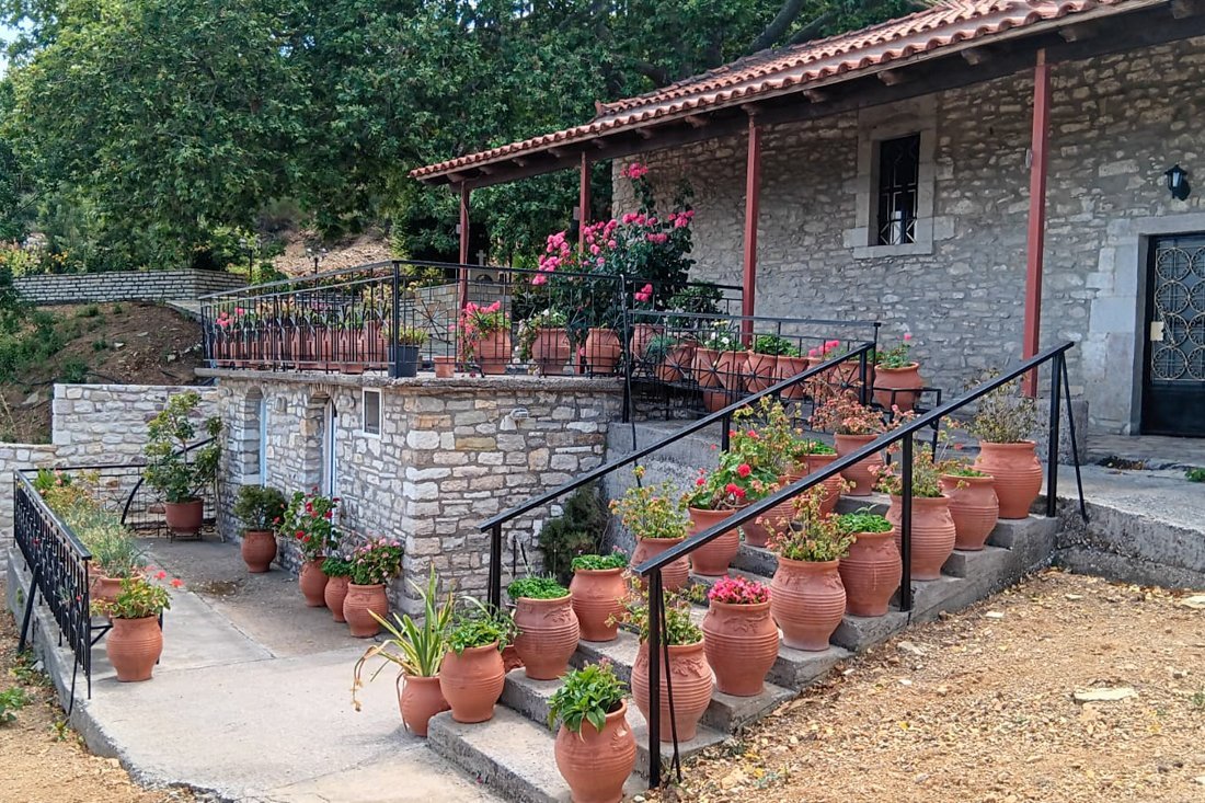 Even 15 min. verderop is het Katsimikada-klooster en dat is ook zeker een bezoekje waard. De weg ernaartoe is goed en de vriendelijke Pappas opent op verzoek graag de kerkdeur. Er is hier een prachtige tuin met wijds uitzicht. Let op: van 14.00u tot 19.00u is het gesloten.