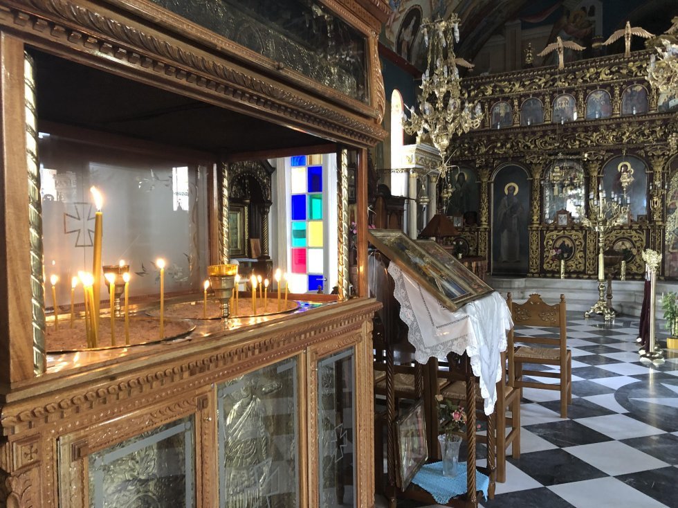 In Argostoli zijn we op zoek gegaan naar het Acqui monument, al lopend door de stad en een heuvel opklimmend. Het monument voor de Italiaanse militairen die in sept. van ’43 gefusilleerd zijn door de Duitsers. We zijn hiernaar op zoek gegaan nadat we het boek: “Kapitein Corelli’s mandoline” hadden gelezen. Een verhaal van fictie en non-fictie dat zich afspeelde op Kefalonia. Indrukwekkend en de moeite waard om te lezen. Op dit eiland kijk je naar alle kleine zaken die er in het leven toe doen: natuur, cultuur en vriendelijke, behulpzame Grieken, een bloeiende plant, de relaxtheid, het pure eten, de tijd die er niet toe doet ,’alles kan en niets moet’ !! Een open kapel of kerk vinden valt niet meer mee, dat was ‘vroeger’ anders…alles was open….om een kaarsje op te steken, dat wilden we nu ook. Wij zijn naar Argostoli gescooterd om een open kerk te vinden en hebben daar ons beloofde kaarsje opgestoken. We hebben er een kiekje van genomen en….de foto is gekozen bij de 10 mooiste foto’s van september ’22. Hopelijk helpt het aangestoken kaarsje voor die persoon in de toekomst.