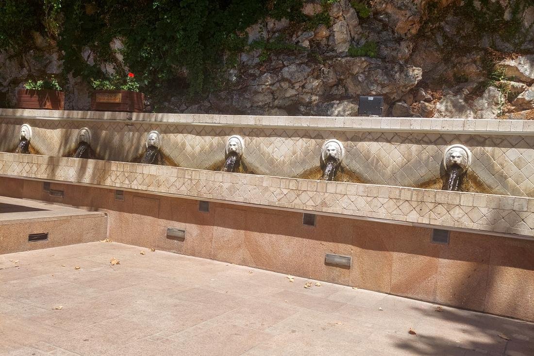 Teruglopend naar het dorp zie ik het Greenhotel, alwaar niemand aanwezig is en je een telefoonnummer moet bellen wil je blijven. Ik stel het boeken nog maar even uit. Ik loop nog wat in het dorp en stuit op de leeuwenkop fonteinen waar de hostess over verteld heeft. Het is een heerlijke plek en ik vul mijn dopper voor de terugreis. Nog even langs de winkel om het beautiful life parfum te kopen die ze in de grote winkel niet meer hadden. Ik vraag waar de busstop is, want nergens is een halte te zien. De dame wijst een plek aan in de buurt van waar we die ochtend zijn uitgestapt. En nee, ze weet niet hoe laat hij gaat. Vanuit de timetabel heb ik een soort van berekend dat de bus rond 16.30u langs zou moeten komen. Maar dat kan volgens de hostess ook 10 minuten eerder of later zijn. Ruim op tijd zit ik dan ook op het schoolbankje, want als ik deze bus mis, mis ik ook de overstap voor de laatste bus naar Plakias.