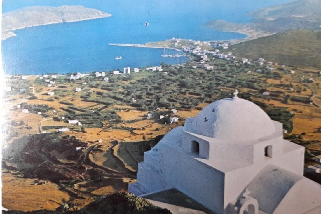 Serifos 1978: Haven Livadi en uitzicht op Chora, 2e foto uitzicht van Chora op Livadi