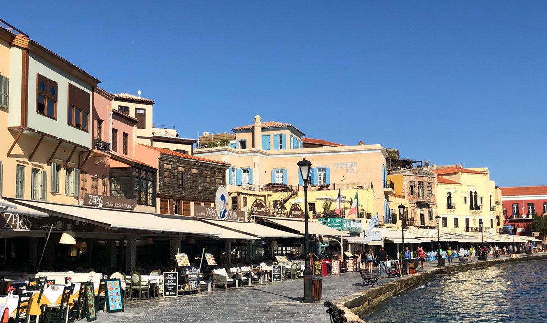 De volgende dag, na het ontbijt, checkten ze uit in Michalis om hun reis voort te zetten naar Zuid-Kreta met een tussenstop in Chania. Hier hebben ze de auto geparkeerd om vervolgens de reis per voet voort te zetten. Wat een praaltje is deze stad en je ziet de Venetiaanse invloeden gelijk.