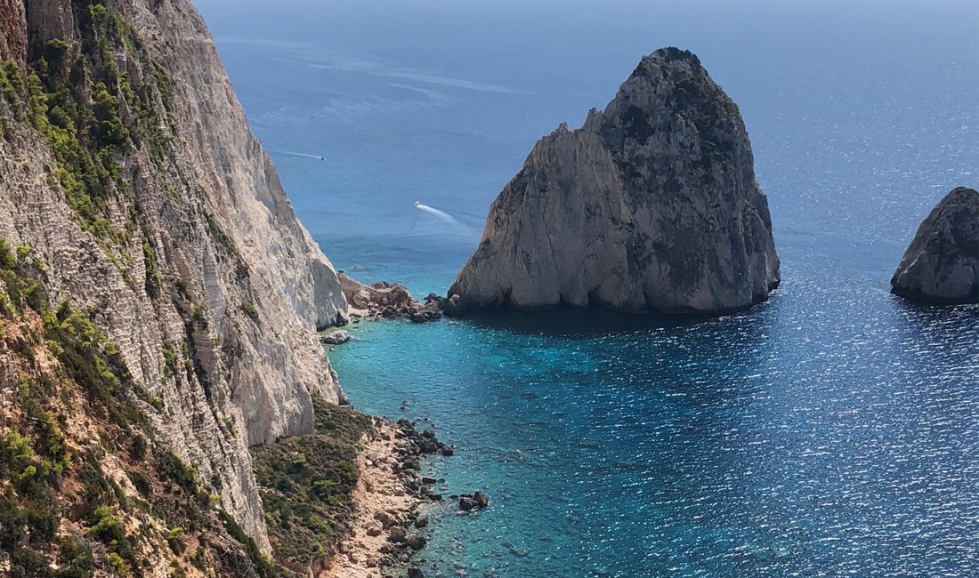 Daarna bezochten ze Loucha en Gyri, 2 kleine bergdorpjes die een beetje aanvoelen als spookdorpen omdat veel huizen niet meer bewoond zijn. Wel worden ze begroet door vele honden en katten. Dorpen zijn zeker leuk om te bekijken omdat je echt in een heel andere sfeer komt dan direct aan de kust. Helaas was Navagio Beach gesloten i.v.m. het tragische ongeval. Daarna zijn ze doorgereden naar weer een prachtig uitzichtpunt waar ze gegeten hebben. Xygia was een baai met water waar zwavel en collageen voorkomt dus hier moesten ze natuurlijk wel even in pootjebaden. Nadat ze het water inschoten nam een golf gelijk hun schoenen mee en waren ze zeik en zeik nat.