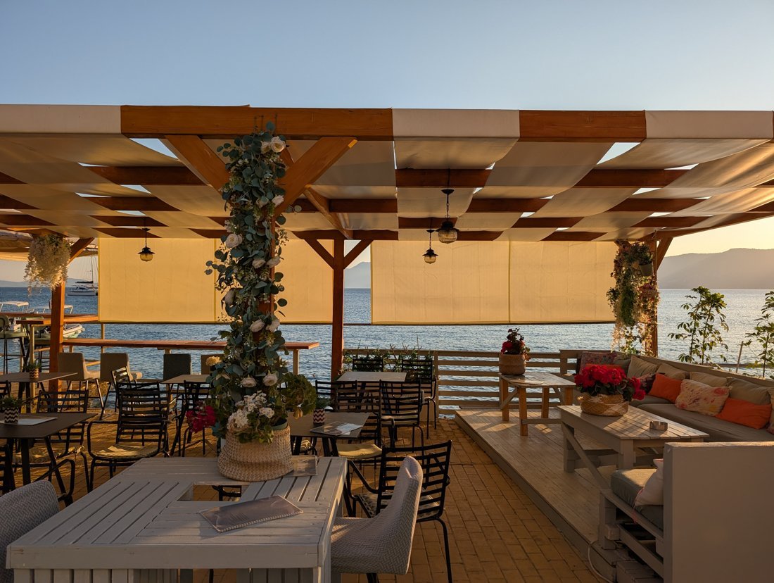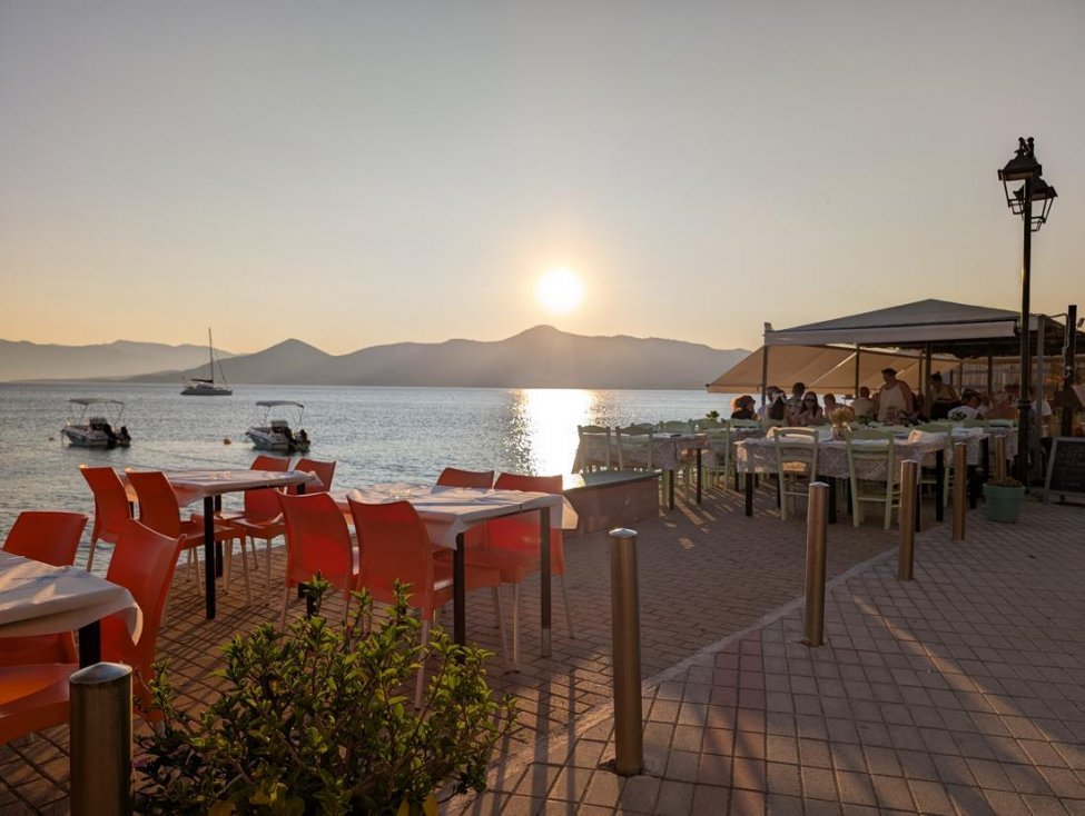 ‘s Avonds vonden wij het heerlijk om langs de boulevard te wandelen en door de smalle straatjes van het dorp te dwalen. We bezoeken winkeltjes en strijken neer op het plein, waar Griekse kinderen spelen en hun ouders rustig genieten van koffie of een diner in een van de tavernes. Terwijl de zon langzaam achter de bergen zakt, dobberen de zeilboten kalm in het water en ontstaat er een romantische sfeer om te dineren. Maar het echte toetje komt nog: iedere avond gebeurt er iets bijna magisch. Zodra de zon achter de boulevard verdwijnt, blijven de laatste stralen nog even op het gebergte schijnen, dat langzaam oranje kleurt, totdat het schouwspel zachtjes in de schaduw verdwijnt. Paleros kleurt oranje. De gezelligheid gaat daarna zeker nog een hele poos door in Paleros.