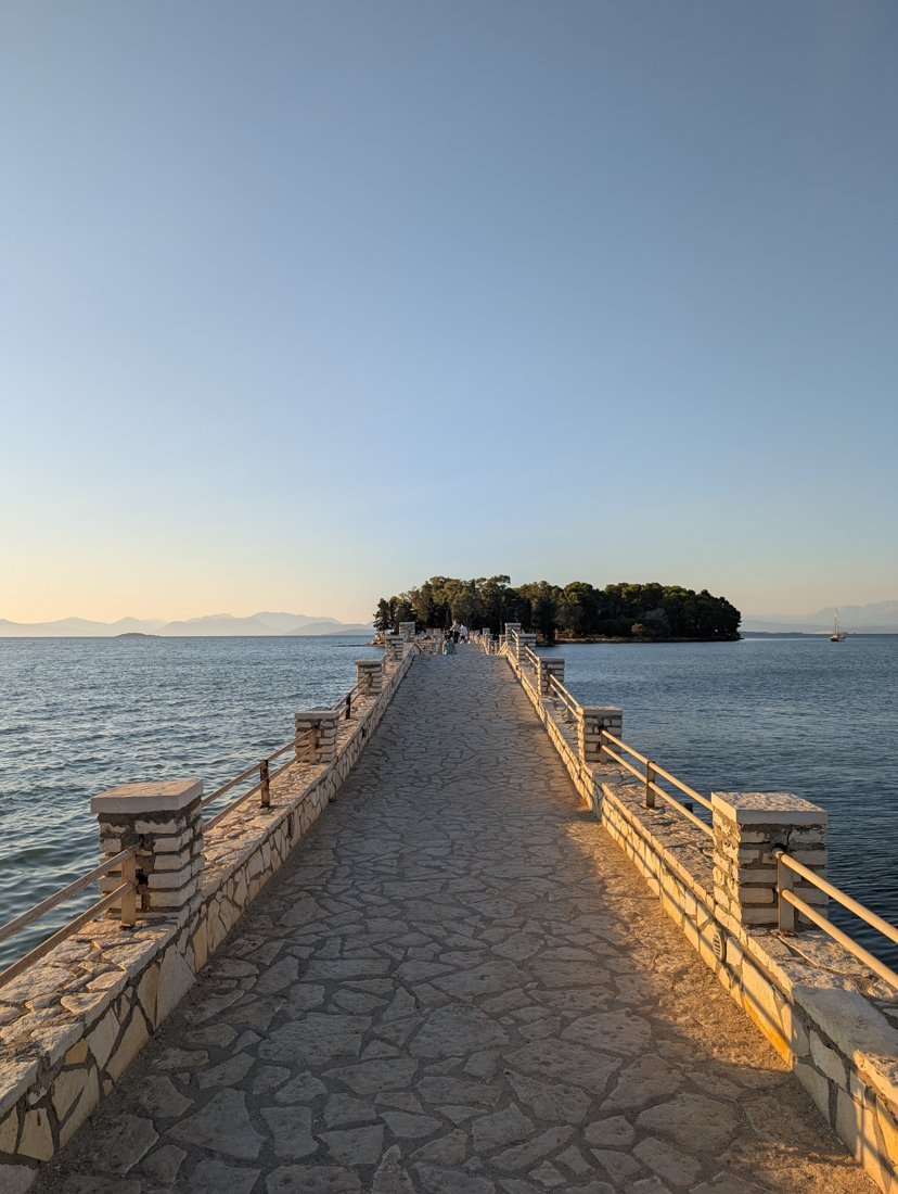 De dag sluiten we af met een wandeling naar Koukoumitsa. Een eiland voor de kust van Vonitsa die met een bijzonder mooie boogbrug verbonden is aan het vasteland. Wij boften, want er ging net een huwelijk beginnen in het kapelletje op het eiland en alle gasten liepen in hun mooiste kledij over de brug. We genoten van de zonsondergang op de brug, voordat wij Vonitsa weer achter ons lieten en terugkeerden naar ons Paleros.