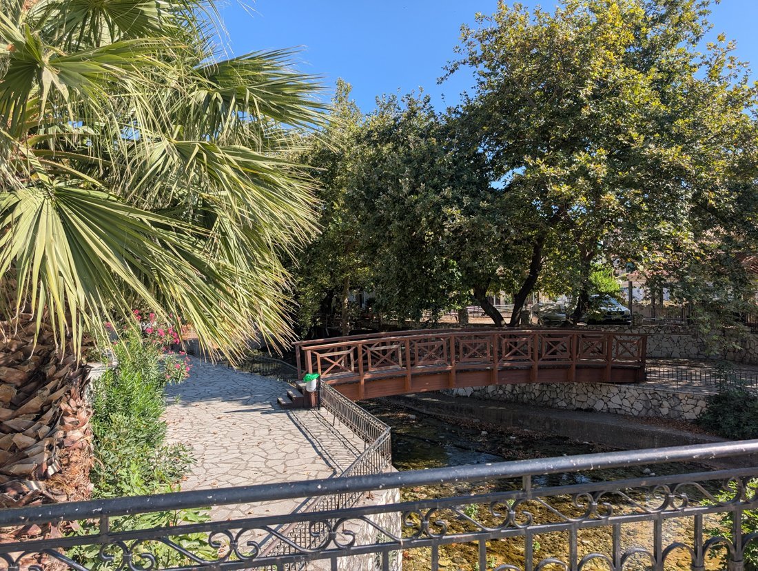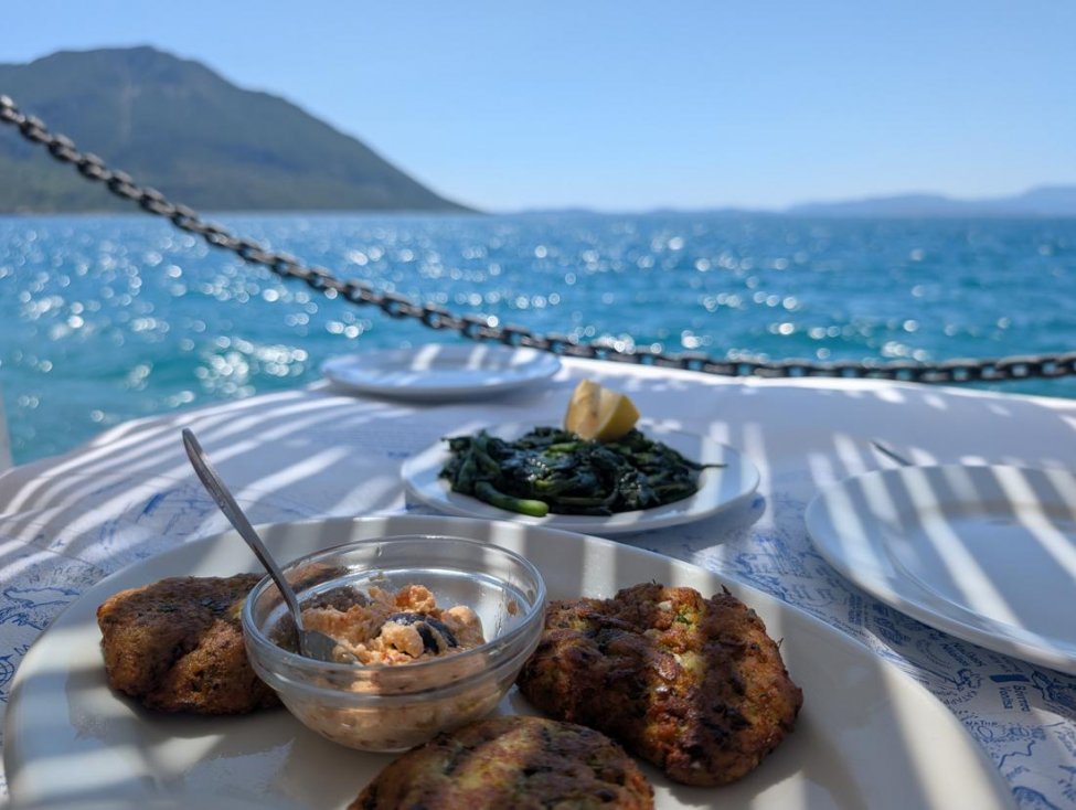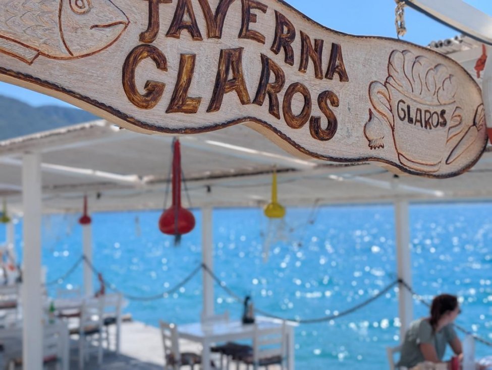 Bij een kleine taverne recht aan het water nemen wij plaats. We kletsen gezellig met de meneer. De taverne draagt zijn eigen naam en hij is hier al vele jaren gevestigd. ‘You went to Tryfos ... ? Are you sick?’. Samen lachen we nog even over de healing waters en de schoonheid van de natuur. Deze dag gaan we vieren met vlita, kolokithokeftedes en verse vis. Het eten is eenvoudig, maar zo smaakvol. De sfeer is sereen, zo heerlijk aan het kabbelende water. Voldaan rijden we terug naar Paleros.