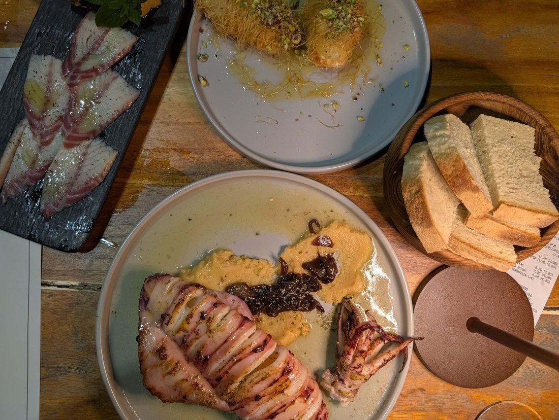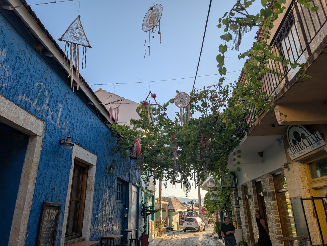 Lefkas-stad stelt ons opnieuw niet teleur. Een sfeervol stadje met leuke winkels en een groot gezellig plein. In de kleine straatjes zoeken en vinden we een restaurant waar we 12 jaar geleden waren met zijn tweeën. Toen was het hun eerste seizoen, maar inmiddels zo te zien een begrip in de stad. Gelukkig konden ze toch nog twee tafeltjes vrij maken voor ons, omdat wij na zoveel jaren terug waren gekomen. We splitsten ons op en ik genoot van een date met mijn dochter. Oude en nieuwe herinneringen smolten samen.