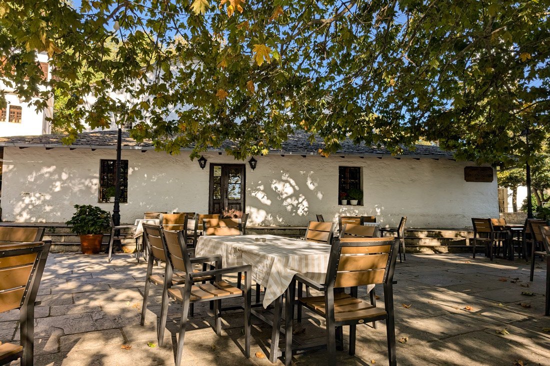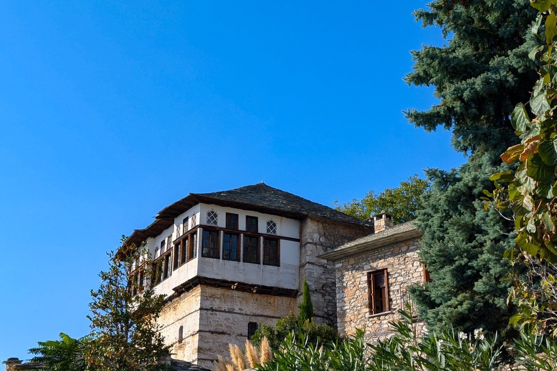 Op 5 minuten rijden, slechts een klen beetje bergopwaarts, komen we al in het eerstvolgende dorp, Vizitsa. De archontika (herenhuizen) die wij al in Milies veelvuldig zagen zijn hier nog rijkelijker aanwezig. Deze traditionele architectuur uit de 18e eeuw wordt goed in stand gehouden. Veel van deze woningen zijn nog in uitstekende staat en leuk om te fotograferen. Ook Vizitsa heeft een gezellig dorpsplein met tavernes, ik heb het gevoel dat wij de enige zijn die geen vloeiend Grieks spreken. Het is jammer dat wij nog meer dorpen willen bezoeken, anders hadden wij hier prima de hele ochtend kunnen zitten.
