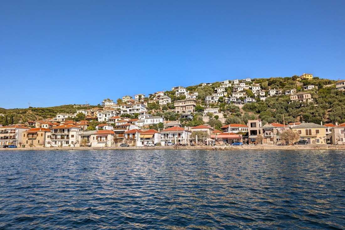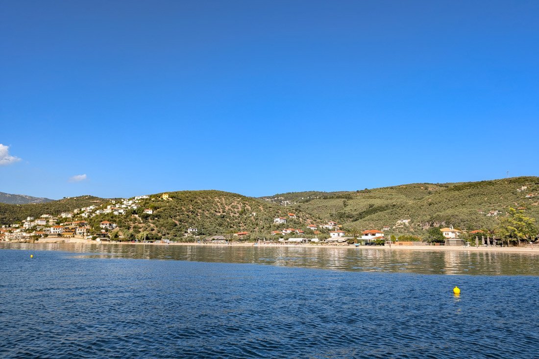 Aan het einde van de dag tuffen we rustig terug naar Kala Nera langs de kust. Een feestje van herkenning als we langs Lefokastro, Afissos en Koropi varen, maar ook weer nieuwe ontdekkingen die alleen vanaf het water te zien zijn. We bewonderen de huizen in de bergen en dromen toch weer even weg van een eigen plekje. Het was een prachtige dag.
