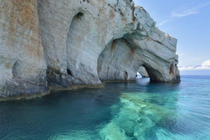 Langs de ruige en rotsachtige noordoostkust van Zakynthos zijn er plekken waar geen enkele boot kan komen. En eenmaal bij de grotten kunt u vanaf het waterniveau genieten van de iriserende blauwe kleuren die ontstaan door het spel van zonlicht op de rotswand en de zee, samen met de af en toe oranje-paarse accenten van koraal in de rotsen. Voordeel van de kleine bootjes is niet alleen dat ze per keer slechts een kleine groep mensen brengen, maar ook dat ze tot ver in de grotten kunnen komen. De schippers brengen u naar de mooiste plekken en onder hun begeleiding is een duik naar de ondergrondse poorten vast minder spannend, wanneer u daarvoor in bent. De schippers weten de weg en laten deze graag zien.