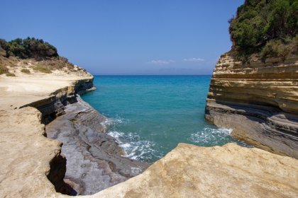 In het noorden van Corfu, dicht bij het dorp Sidari, ligt een gebied met prachtige rotsformaties en inhammen. De beroemdste inham is ‘Canal d’Amour’, ofwel het kanaal van de liefde. Deze lange, smalle inham tussen twee kliffen is ontstaan doordat de zee het zachte zandsteen door de tijd heeft weggesleten. De rotsen zijn in duidelijk zichtbare lagen opgebouwd en variëren in kleurtinten die prachtig afsteken tegen het blauwe water. Volgens de overleveringen zullen stellen die gezamenlijk door het smalle kanaal zwemmen, voor altijd gelukkig zijn en samen blijven. Ook alleenstaanden zullen hier het geluk in de liefde vinden, want wie helemaal tot het eind zwemt, zal binnen afzienbare tijd de liefde van zijn leven tegenkomen.