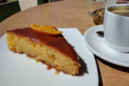 's Ochtends wakker worden van de vogels en wat stralen zonlicht door de gordijnen. Na een fijne douche op de slippers naar het bakkertje. Een goede kop koffie en in het weekend een stuk cake erbij. Portokalopita, mijn favoriet.