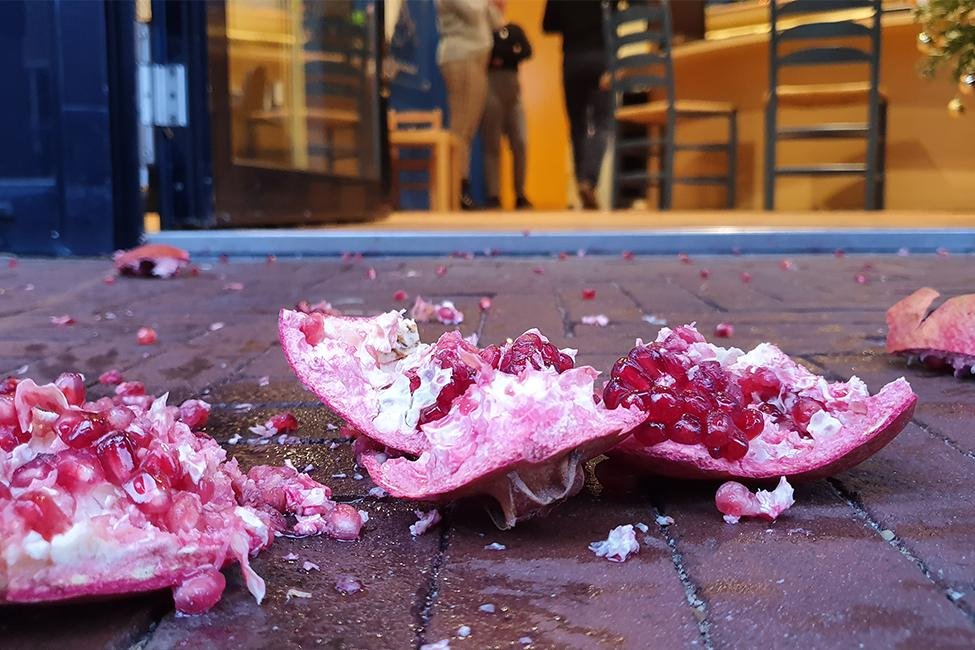 Nauw verbonden met deze nieuwjaarstraditie is ook het stukgooien van een granaatappel voor de deur. De granaatappel staat symbool voor geluk en voorspoed en dit komt terug in de wensen die bij het stukgooien worden uitgesproken. Zo kan bijvoorbeeld het gewicht van de granaatappel als symbool voor een zware portemonnee gezien worden, de vele pitjes voor veel goeds en het rood van de granaatappel voor een warm hart.