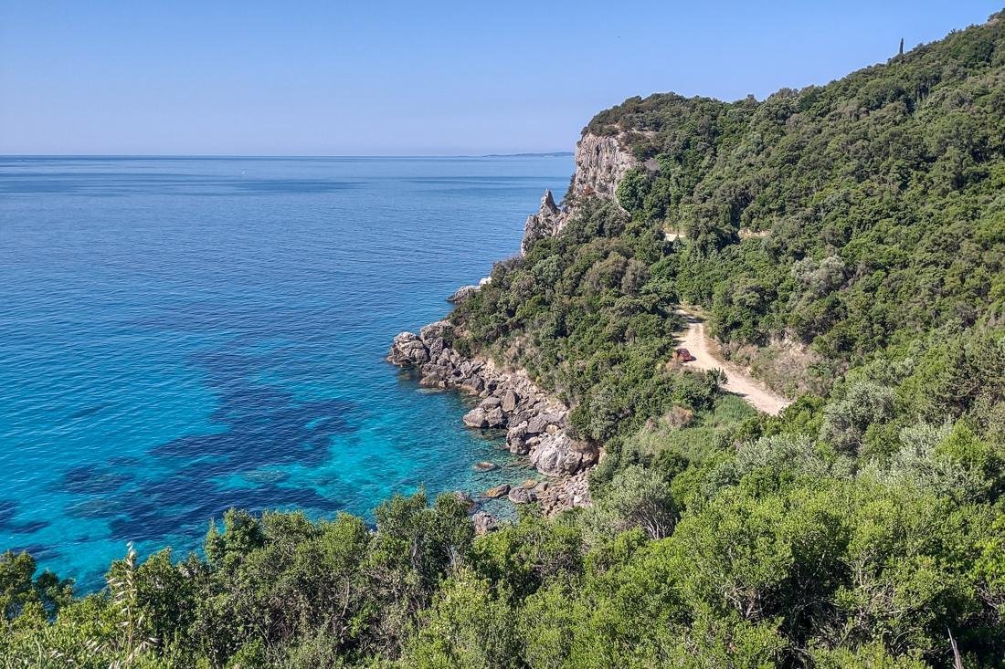 Vandaag starten we in Parga en gaan we heuvelopwaarts door de olijfboomgaarden richting het kerkje van Agia Elini. Het kerkje is het zeker waard om te bekijken en ook hier hadden we weer een werkelijk schitterend uitzicht over Parga en de zee. En onze fantastische gids Stephanie vertelde van alles over het kerkje en de Griekse religie. Vanaf hier gaat ons pad verder richting zee.
