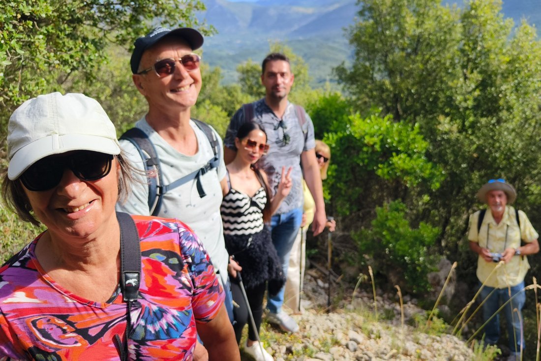 Op vrijdagmorgen 9 mei werden wij om 8.15 opgehaald door de taxi om richting Polyneri te rijden, nadat de andere deelnemers ook waren opgehaald. Voordat we vertrokken kregen we nog uitleg over de wandeling en werd gevraagd of we genoeg eten en drinken bij hadden door de wandelgids Leon.