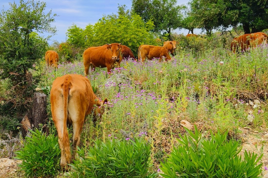 Afdalend genoten we ook van de vlinders, bloemen, bomen en roofvogels. Bijna beneden kwamen we bij een drinkplaats ook weer veel koeien tegen.