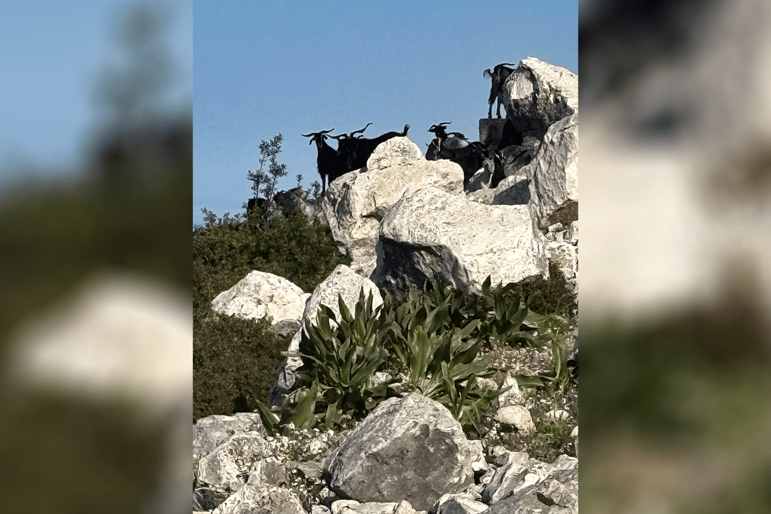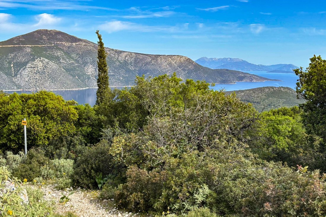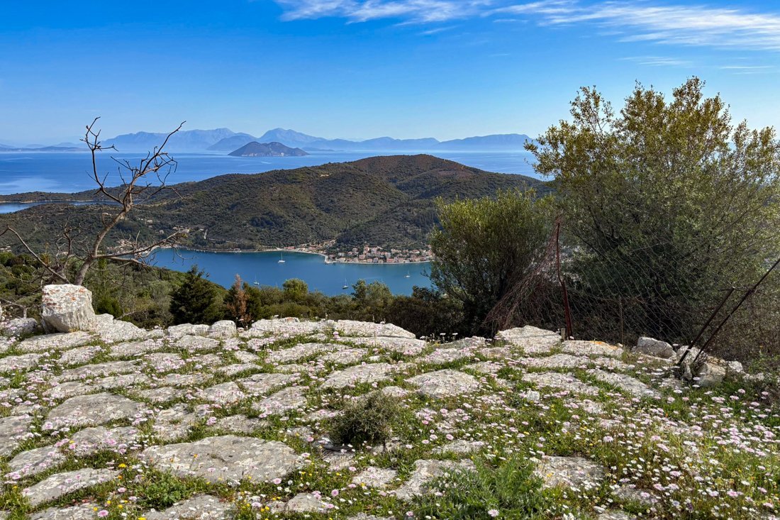 Vanuit het dorp is het direct klimmen naar Pernarakia, de top van de berg met kerk en een klokkentoren. De kerk werd zwaar beschadigd tijdens de aardbeving van 1953, maar is gelukkig gerepareerd dankzij de financiering van Panos Gratsos. Een scheepseigenaar die afkomstig was van Ithaki en hiernaar terugkeerde. Hij zorgde ook ervoor dat het enige wegennet naar deze hoogte hersteld werd. We zitten inmiddels op een hoogte van 505 meter. Het uitzicht hier is van een enorme schoonheid. Het is genieten voor iedere deelnemer aan deze wandeltocht. Van hieruit gaan we een lange, steile, laag begroeide helling naar beneden. Uiteraard weer over een ezel- en geitenpad. De geiten hoor en zie je regelmatig tijdens deze wandeling. Georgos benadrukt voorzichtig te zijn en op te letten op de losliggende stenen en keien.