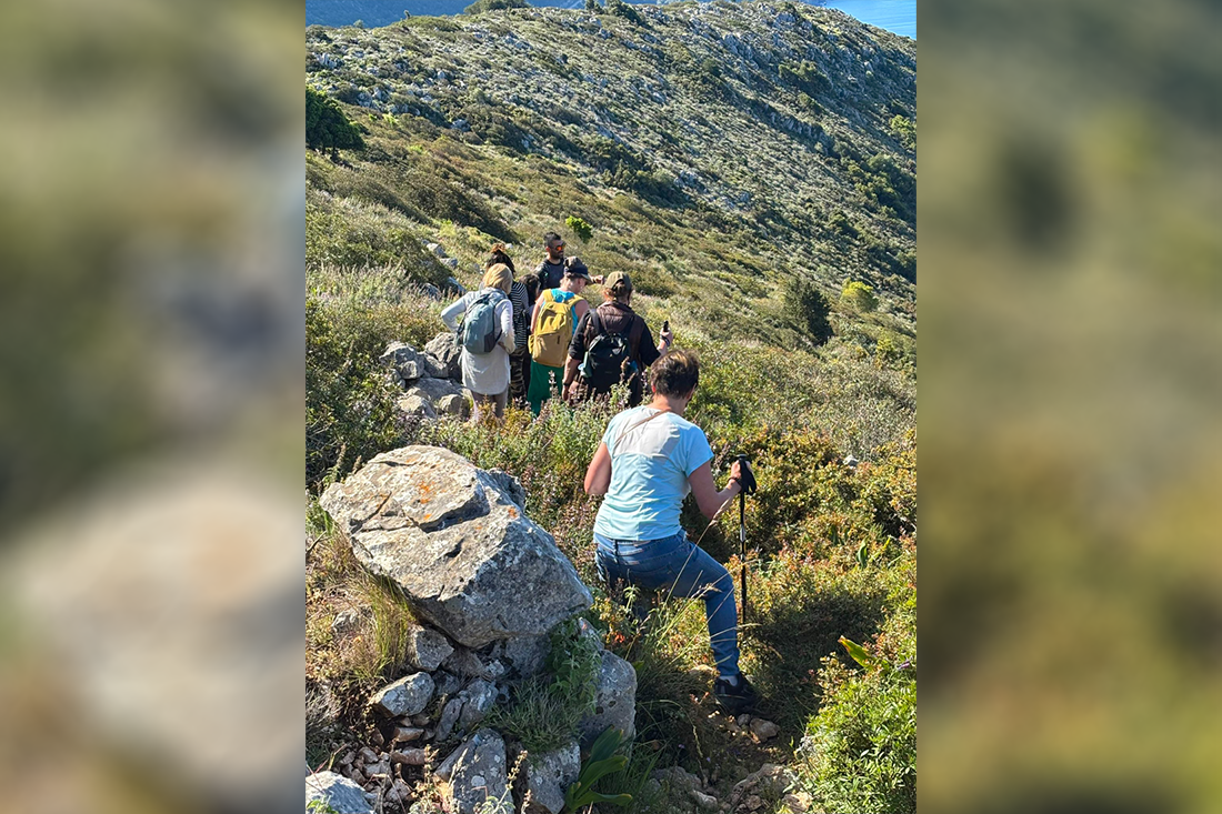Je verovert het eiland Ithaki pas, als je mee gaat wandelen met een gids. Op adembenemende uitzichten word je continu getrakteerd. De eerste dag was Adriana onze gids. Zij spijkert ons bij over de cultuur en geschiedenis van dit wonderschone eiland. Ondanks haar Chileense afkomst is ze erg goed op de hoogte van wat Ithaki te bieden heeft. Ze woont er al jaren.