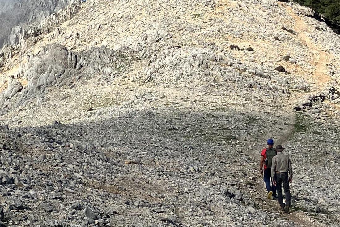 Vroeg in de ochtend werden we opgehaald voor een tocht naar de hoogste toppen van het eiland. Het was half oktober, dus nog best fris de eerste uren. Eigenlijk was de weg afgesloten wegens werkzaamheden, maar Lambros wist via via een doorgang te regelen. We liepen langs wonderlijk gevormde olijfbomen en zwarte sparren en kwamen bij een verborgen grot waar honderden vleermuizen hingen te slapen. De klim naar boven was vrij pittig, ook omdat de lucht daar een stuk ijler is, maar omdat het helder weer was werden we beloond met een indrukwekkend uitzicht. Lambros weet veel van de omgeving (“I know every stone”) en kan er leuk over vertellen. Moe, maar zeer voldaan keerden we terug naar Vangelis voor een verfrissende plons in het zwembad.