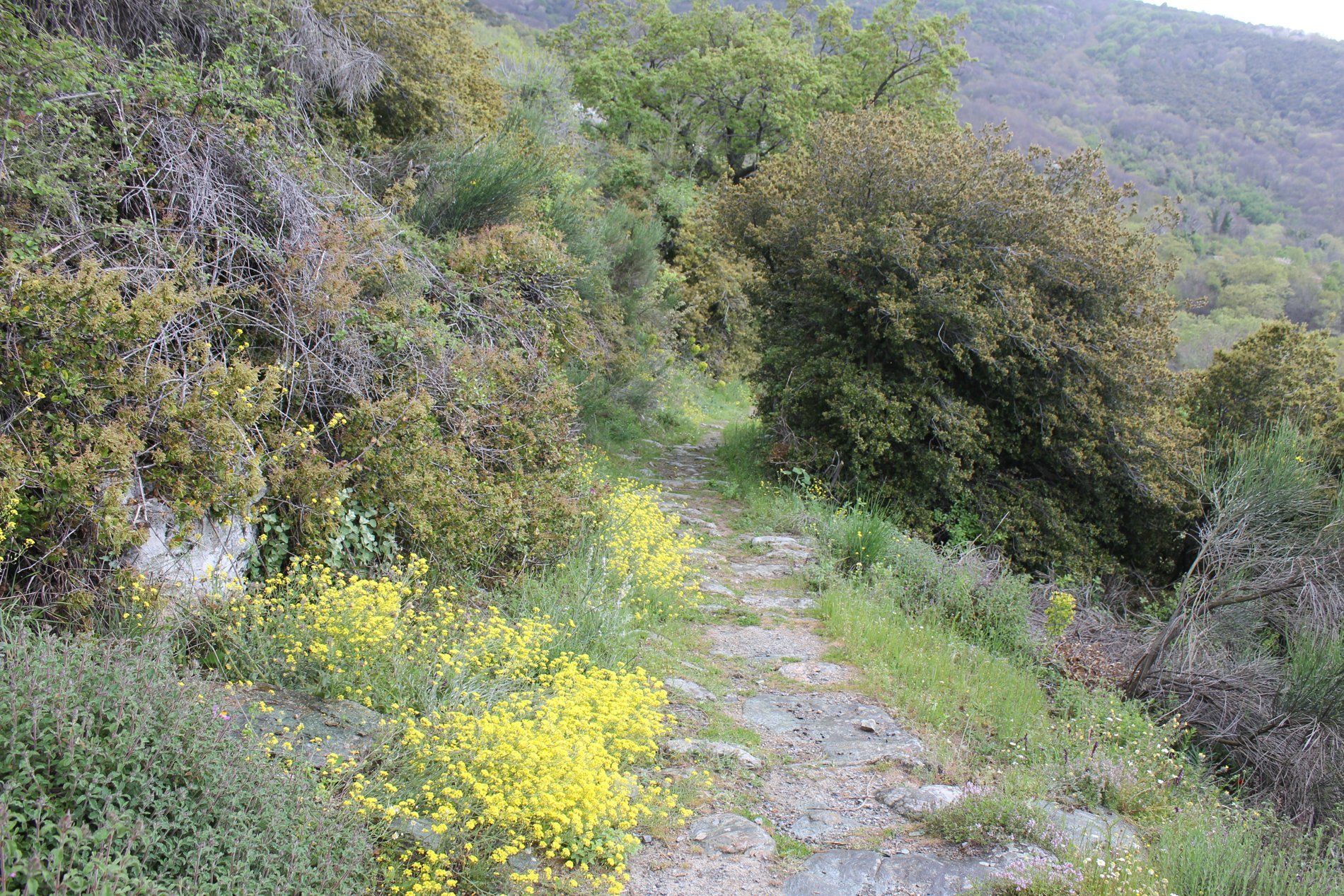 Deze wandeling maakten we uitgebreid kennis met de kalderimi’s die je nog veel in Pilion tegenkomt. In de loop van de tijd zijn er veel in onbruik geraakt. Gelukkig voor wandelaars zijn er de laatste decennia weer veel begaanbaar gemaakt.