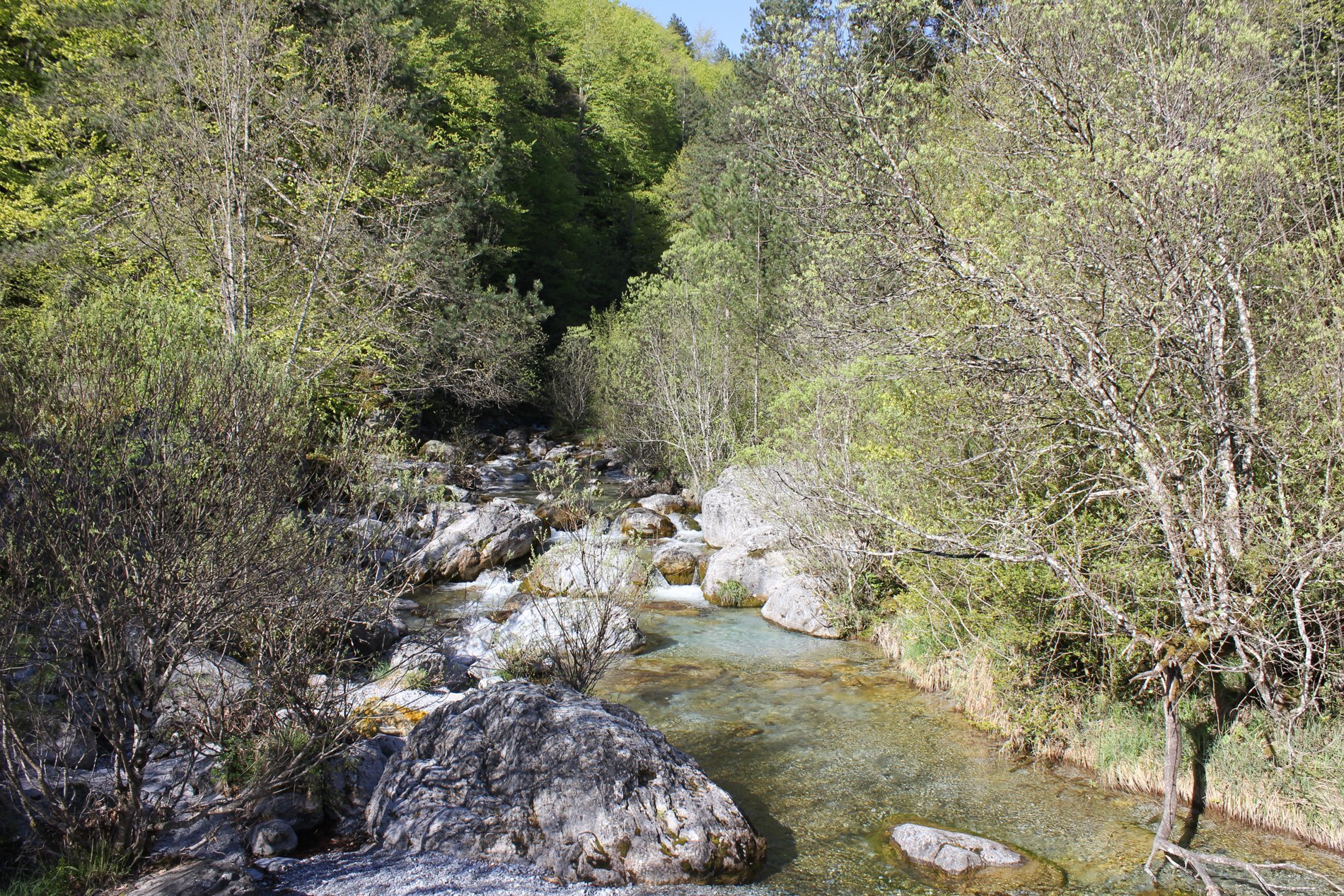 De Enipeas rivier bepaalde onze route deze dag. We liepen langs de oevers van deze rivier naar Litohoro. We staken deze keer niet van steen op steen stappend de rivier over, maar maakten dankbaar gebruik van de 7 houten bruggen. Na ongeveer een half uur kwamen we bij de grot waarin Agios Dionysios het liefst zijn tijd doorbracht.
