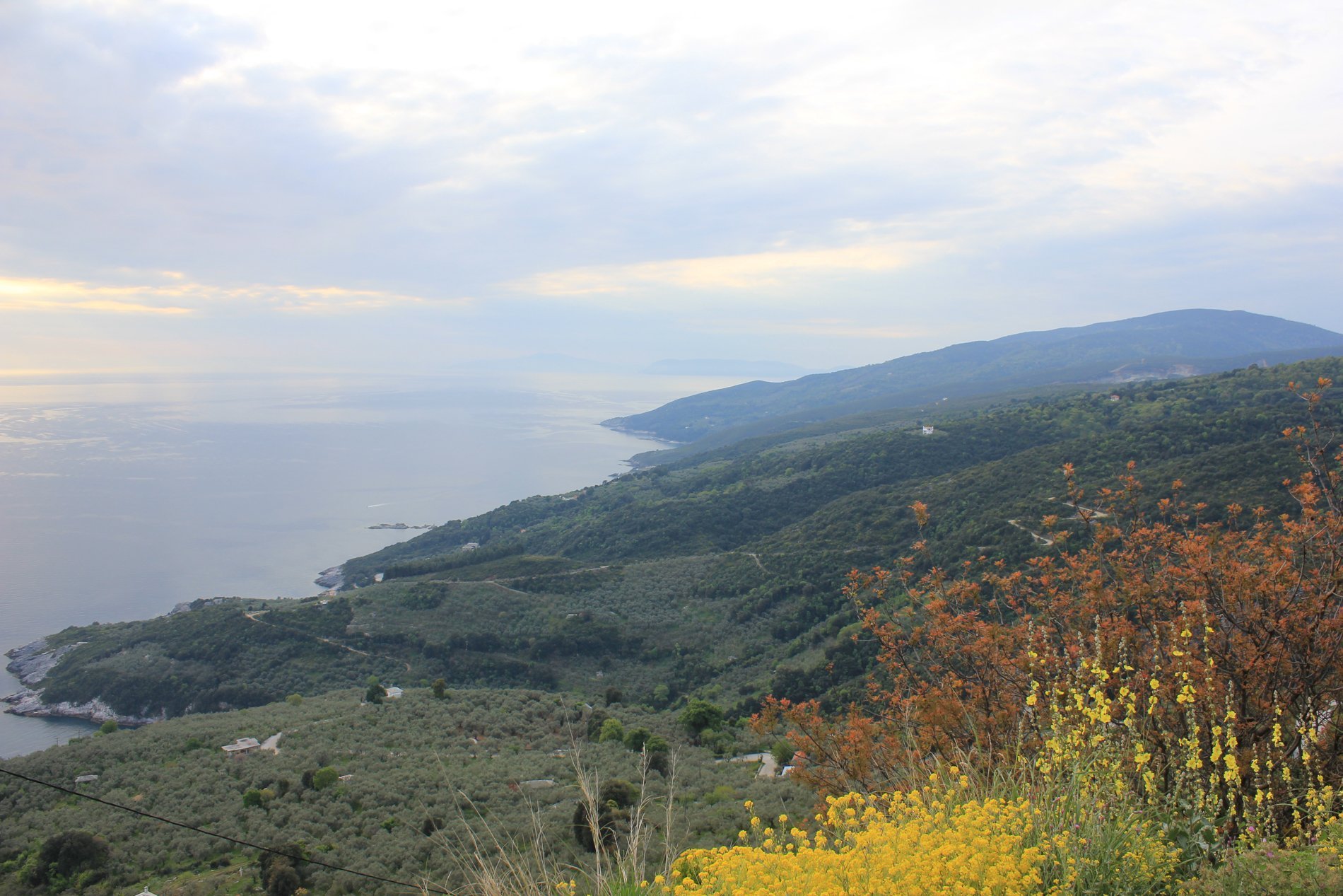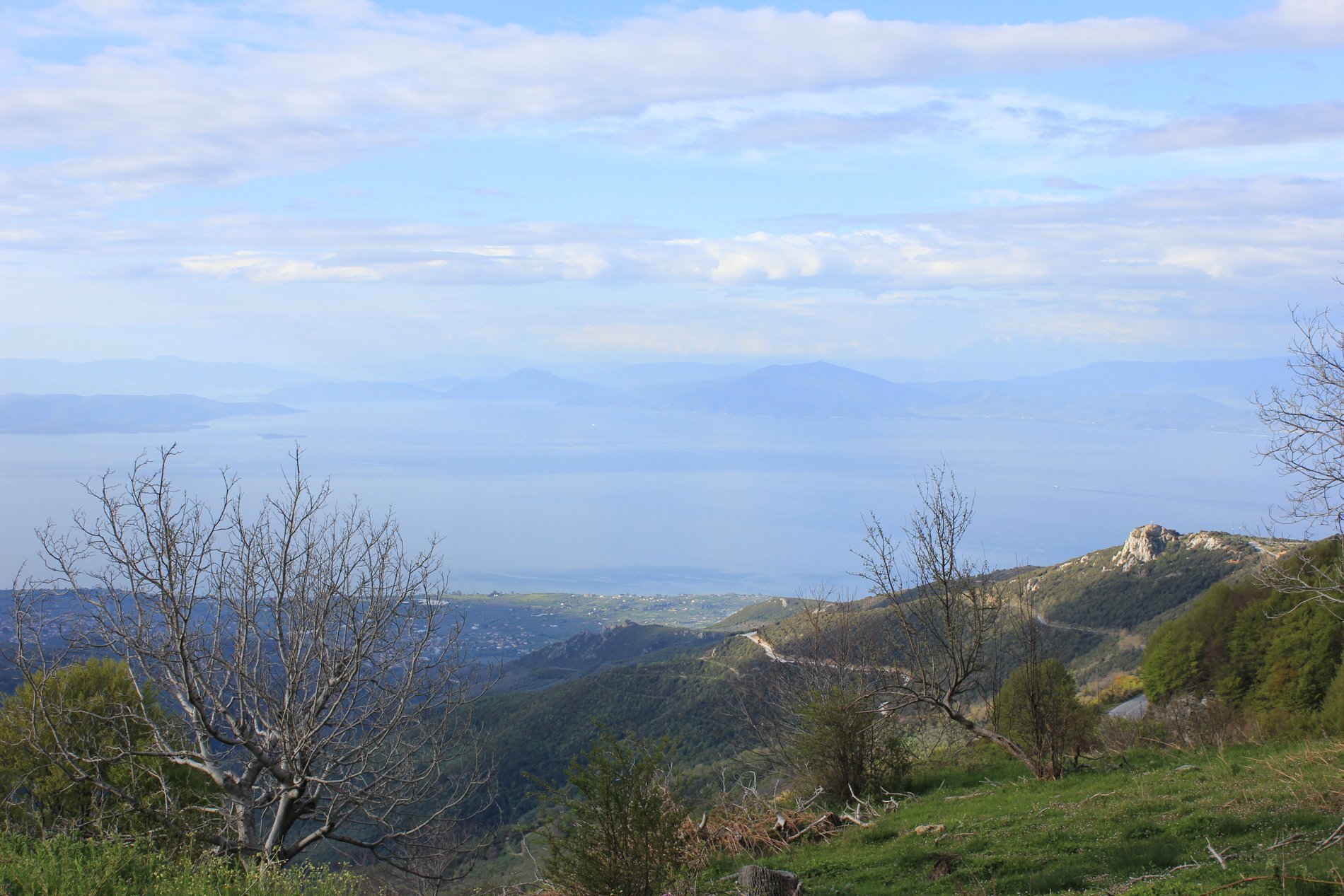 Van Drakeia liepen we langs beboste hellingen naar Agios Lavrentios. Onderweg af en toe bijna natte voeten bij het oversteken van riviertjes, maar ook mooie vergezichten richting Volos en de Pagasitische Golf en op een ander punt naar Drakeia. We stopten in Agios Lavrentios voor een welverdiend kopje koffie of thee.
