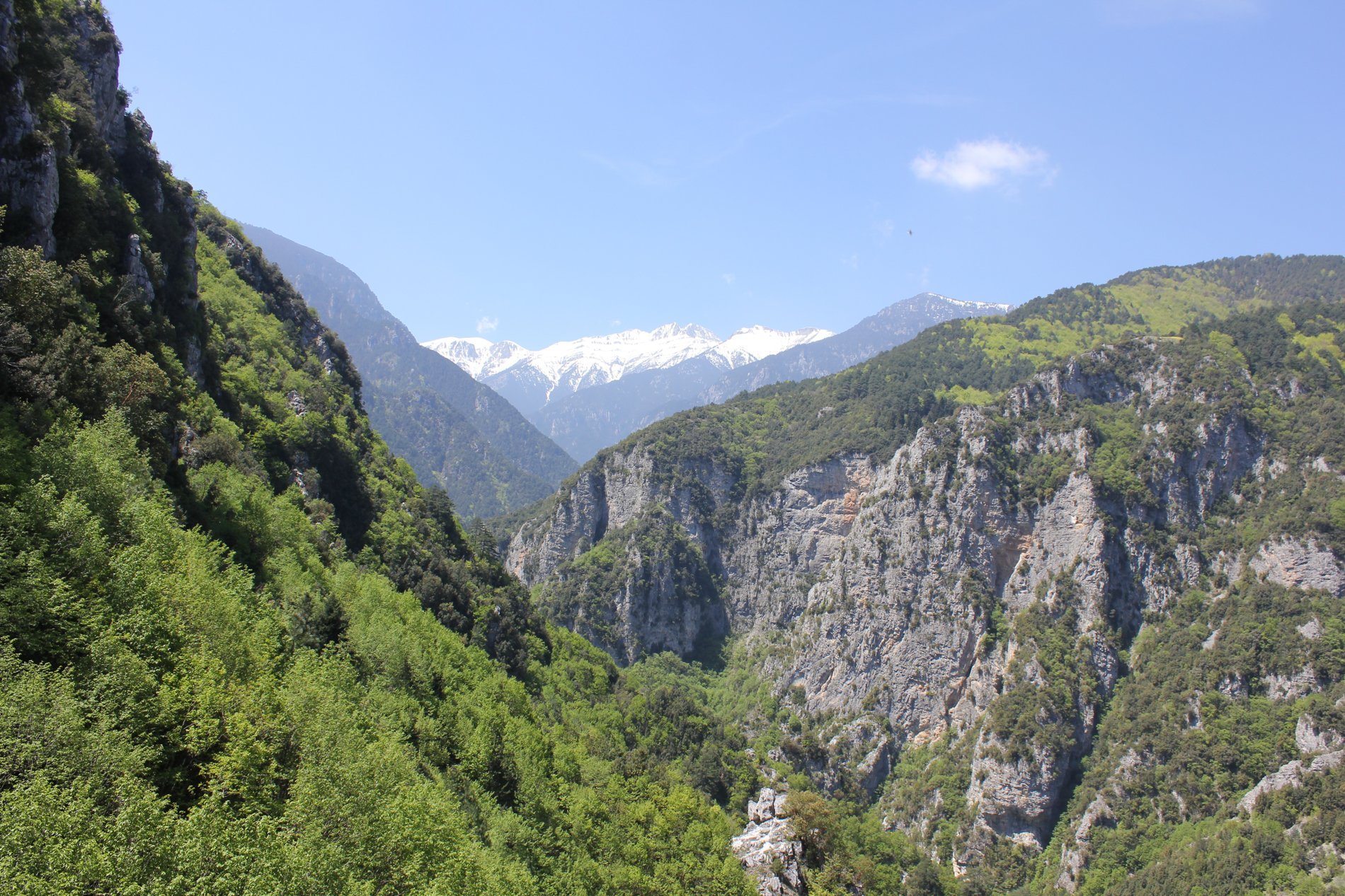 Daarna vervolgden we onze wandeling richting “The Gate”, het punt waarvandaan we naar de ene kant kijkend de besneeuwde toppen van de Olympus konden zien en naar de andere kant de zee. Daar hielden we een welverdiende stop en aten we de meegebrachte boterhammen. Op basis van deze nieuwe energievoorraad liepen we verder richting Litohoro, het eindpunt van deze dag.