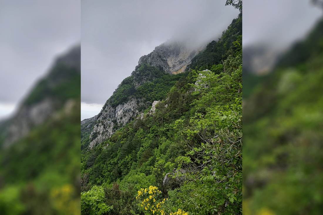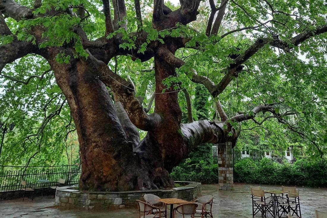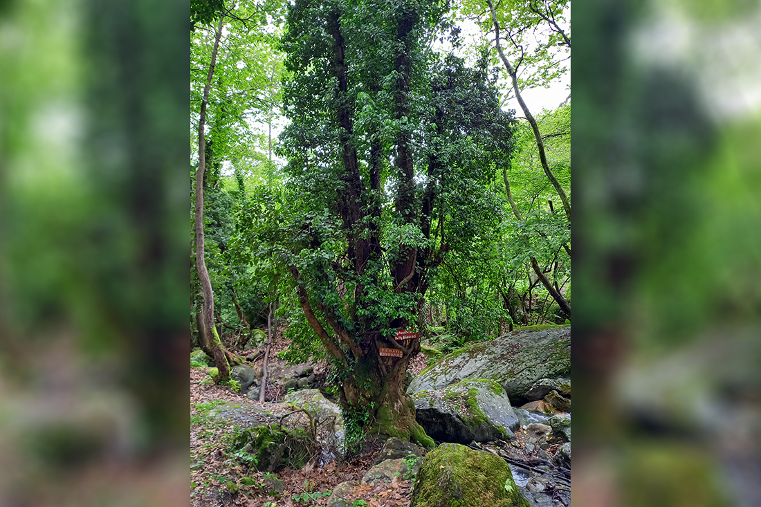 In Tsagkarada bewonderen we aan het begin van de wandeling, uiteraard op het dorpsplein, eerst de 1000 jaar oude Plataan. Daarna betreden we een maagdelijke omgeving. Door het vocht duiken wij ‘nevelwouden’ in. Sluiers mist trekken door een mysterieus ‘deep forest’. Wat een belevenis, je hebt het gevoel in een prachtige natuurfilm rond te lopen. Geen geluid, hooguit wat krakende bergschoenen, wij zijn muisstil, onder de indruk van onze omgeving.