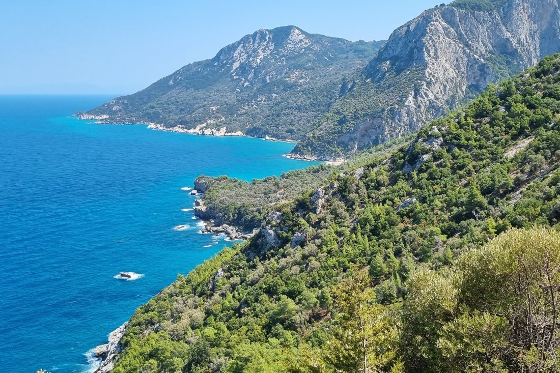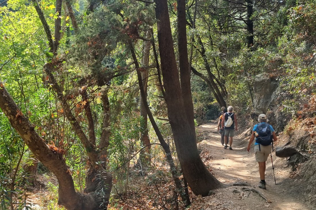 We starten vandaag in Valeondades op de noordhelling van het Ambelos gebergte. Vandaag geen vergezichten over zee, maar paden langs dichtbeboste hellingen met fraaie uitzichten op het berglandschap. We wandelen door de Nachtegaalvallei en door uitgestrekte wijngaarden. Wederom een prachtige omgeving. Het is een gebied met ook nu nog vele kleine bergstroompjes.