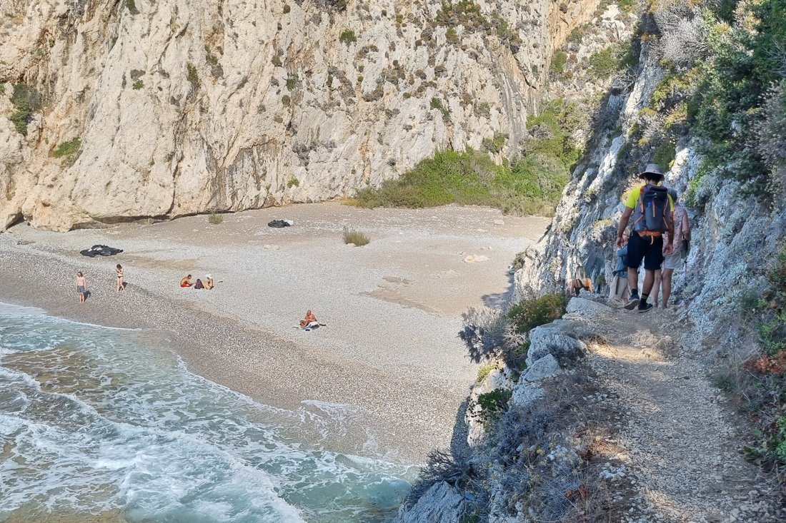 Zo kwamen we aan bij het strandje van Mikro Seitani, dit is uitsluitend wandelend te bereiken.