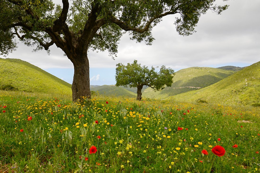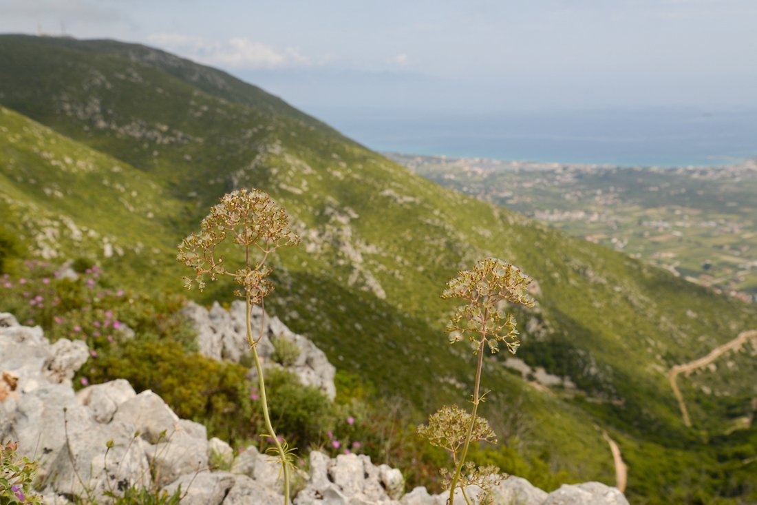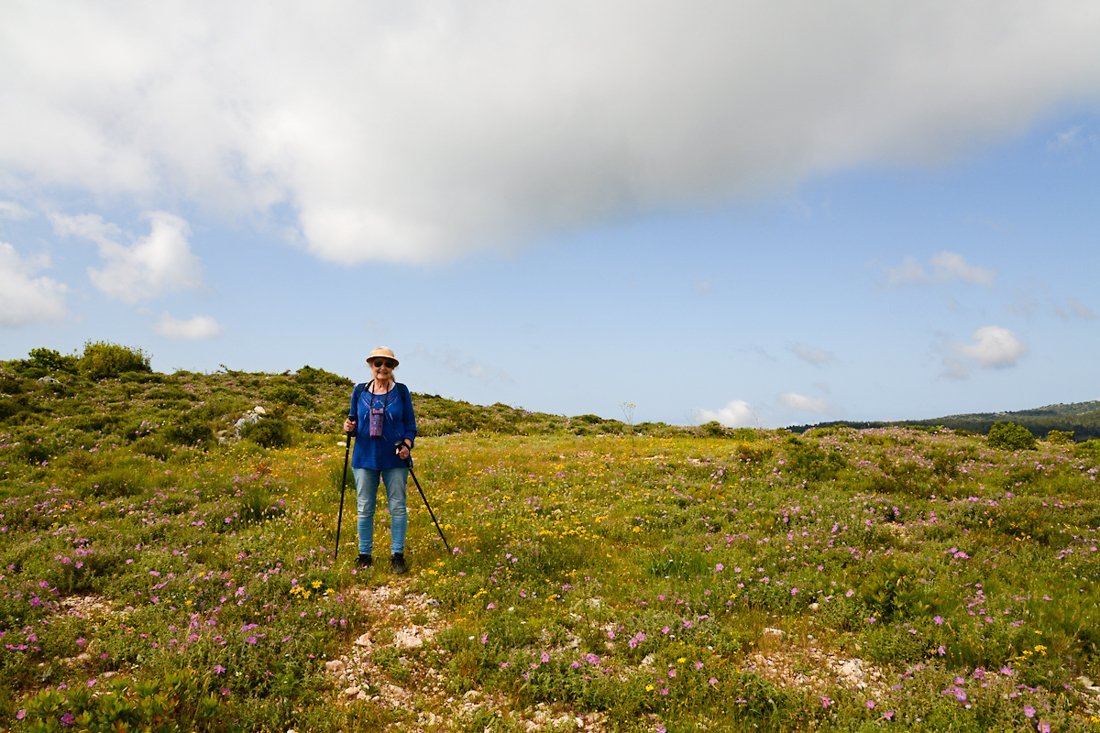 Enigszins gerustgesteld stapten we bij Spiros in de auto en vertrokken richting Keri, het startpunt. Vanuit het dorpje volgden we een route naar boven, langs olijfgaarden en door een stuk bos. Het was nog net april en de natuur was op zijn mooist. Onderweg stopte Spiros regelmatig om ons te wijzen op allerlei planten- en bloemensoorten, waaronder orchideeën. We hadden een wandelende encyclopedie bij ons! En dan bleek hij zich ook goed te kunnen inleven in de wereld van een 16-jarige. Gezellig kletsend liepen Spiros en mijn dochter voorop, mijn moeder en ik hobbelden er achteraan, terwijl ik ondertussen ook nog probeerde foto’s te maken.