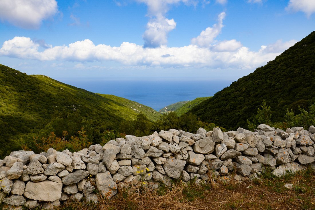 Maar dat we gingen falen voor deze test was wel snel duidelijk. Toen we er nog geen twee kilometer op hadden zitten, was ik al bekaf en mijn moeder was er niet veel beter aan toe. Gelukkig waren we niet ver meer van het uitzichtpunt (zonder hek!) en ging het pad daarna voornamelijk naar beneden. Toch kozen we voor de makkelijkste en snelste weg terug naar het dorp. Dat we daardoor de kerk van Keri misten, was geen probleem: na de koffiestop reed Spiros ons er wel even heen, via een hobbelig pad door een olijfgaard. Toch handig, een auto.