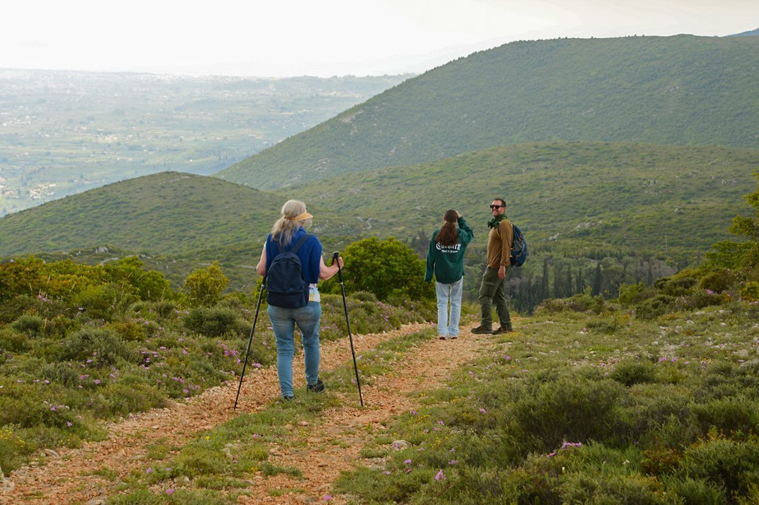 Jarenlang wandelden mijn moeder, mijn dochter en ik op al onze Griekse bestemmingen op eigen gelegenheid. Met behulp van kaarten en routebordjes redden we ons prima. Maar sinds Parga, waar we een verkeerde afslag namen en daardoor onnodig anderhalf uur lang een overwoekerd steil rotspad hebben beklommen, is het duidelijk dat wij begeleiding nodig hebben. We besloten daarom dit jaar een wandelarrangement te proberen.