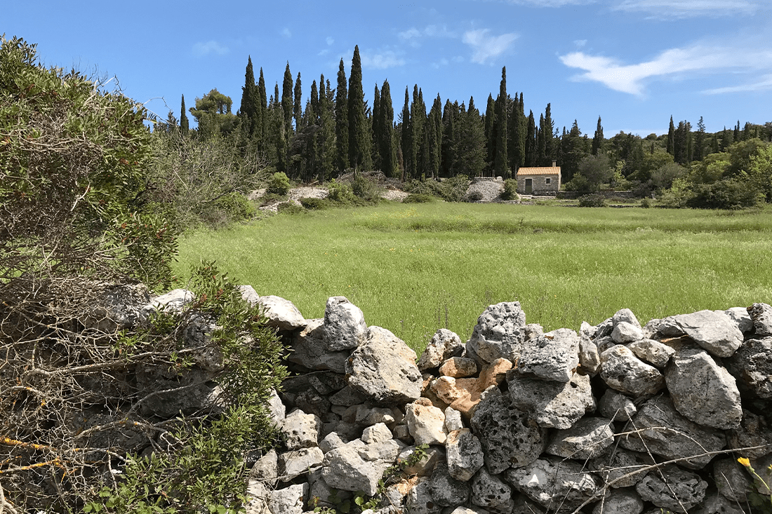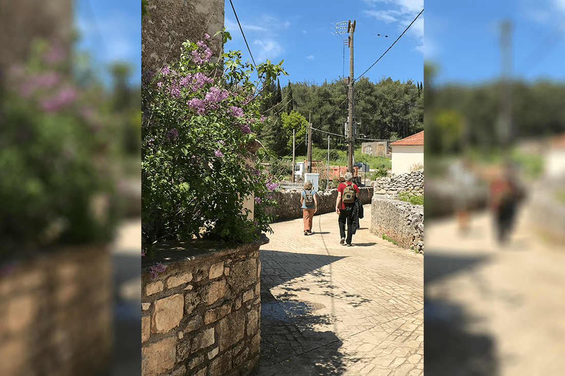5 mei is onze laatste wandeldag, vandaag staan de bergdorpjes Gyri en Loucha op het programma en gelukkig is het weer opgeklaard. We starten de wandeling in het pittoreske Gyri bij het kerkje met klokkentoren en lopen door charmante straatjes met gerestaureerde huizen en boerderijen. Vervolgens lopen we over een hoogvlakte met laag struikgewas, gele brem, wilde kruiden en opnieuw een overvloed aan orchideeën. Het landschap wordt hier doorsneden door lage muurtjes, gemaakt van keien, vroeger werd er landbouw bedreven, nu is de natuur hier de baas.