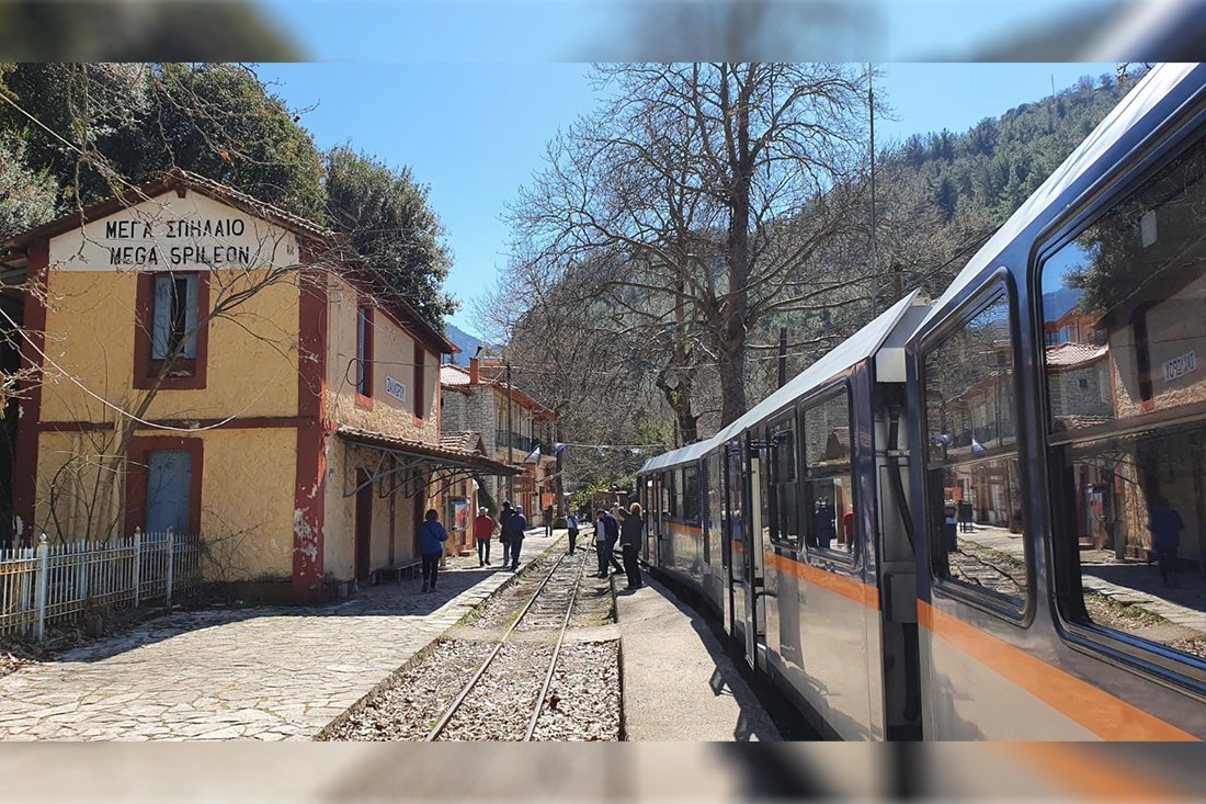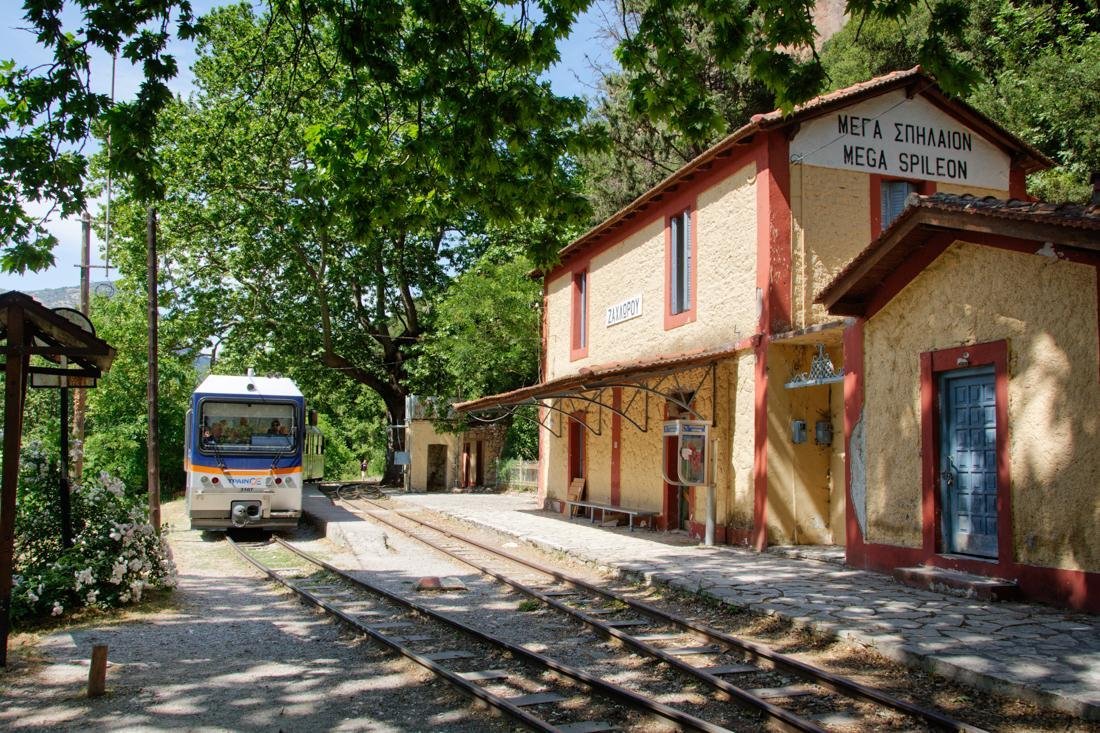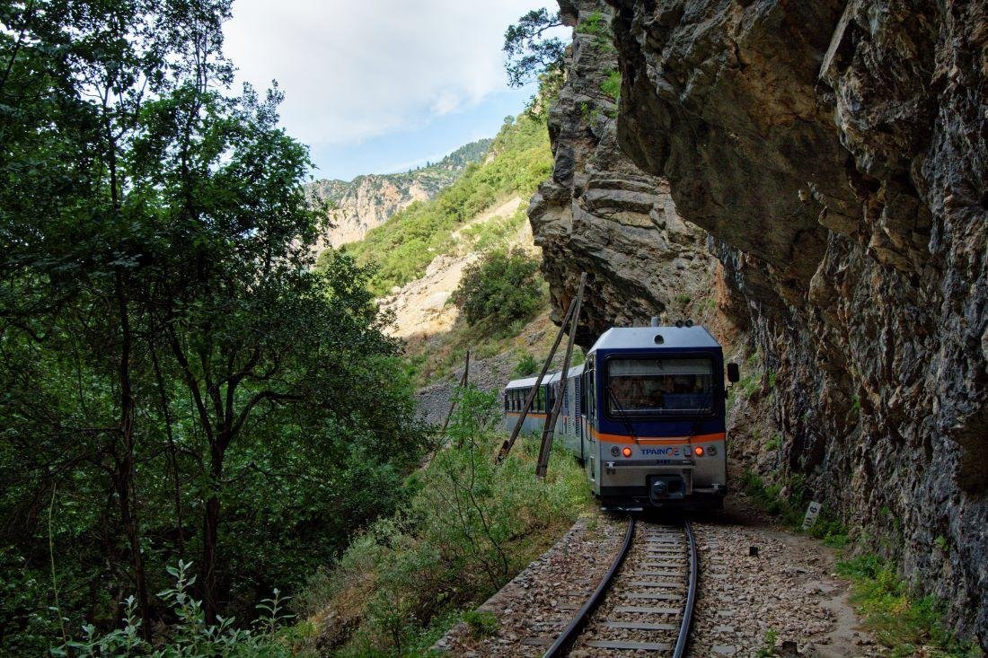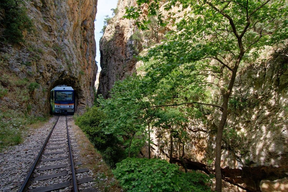 Het traject tussen Diakofto en Kalavrita beslaat 22 kilometer en de rit duurt iets meer dan een uur. De Vouraïkos-kloof maakt deel uit van het nationale park Chelmos - Vouraïkos dat bovendien tot UNESCO-geopark werd uitgeroepen en onderweg komt u door een prachtig afwisselend landschap met ravijnen, wild stromende beekjes, watervalletjes, spoorbruggen en indrukwekkende, in de rotsen uitgehakte, tunnels. Het kan ook zomaar zijn dat de machinist moet stoppen voor een kudde geiten die het spoor oversteekt. Wellicht ziet u ook mensen langs de spoorlijn lopen want de route is eveneens erg geliefd onder wandelaars. De trein stopt onderweg eenmalig in het midden van de route bij het dorpje Zachlorou. Hier kunt u eventueel uitstappen om het Mega Spileo-klooster te bezoeken. Dit klooster is een van de oudste kloosters van Griekenland en speelde een belangrijke rol in de Griekse onafhankelijkheidsstrijd. Eindpunt is het historische Kalavrita. De mooie omgeving nodigt uit tot het maken van een wandeling of het bezoeken van onder andere het indrukwekkende herdenkingsmonument voor de bevolking die omkwam tijdens de massa- executies in de Tweede Wereldoorlog. Natuurlijk kunt u ook gewoon plaatsnemen op een van de gezellige terrasjes of een kijkje nemen in de winkeltjes met lokale producten zoals kaas, honing, kruiden en houtsnijwerk.