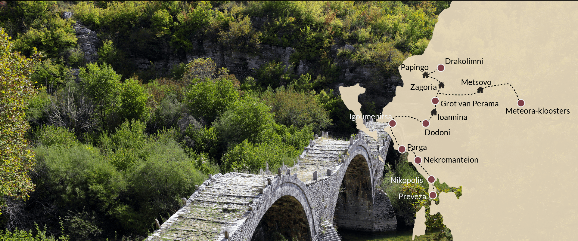 Al na korte tijd komt u bij de ruïnes van Nikopolis, de stad der overwinning. Hier bevinden zich onder andere het Odeon-theater, een oude watertoren en zes grote basilieken met unieke mozaïeken. Tevens is er een museum. Het Nekromanteion dat tevens op de route ligt kan bezocht worden. Daarna rijden we door naar Ioannina, de hoofdstad van Epiros. Niet ver van hier is een beroemd orakel uit de oudheid, het Orakel van Dodoni. De Romeinen hebben er later een theater van gemaakt. In het museum van Ioannina liggen plaatjes met vragen die mensen aan de orakelpriesteressen stelden. In Ioannina zijn vele overblijfselen te zien van de Turkse overheersing, maar deze staan later in de autorondreis op het programma. Van hier reist u naar een van de dorpen in Zagoria waar u overnacht.
