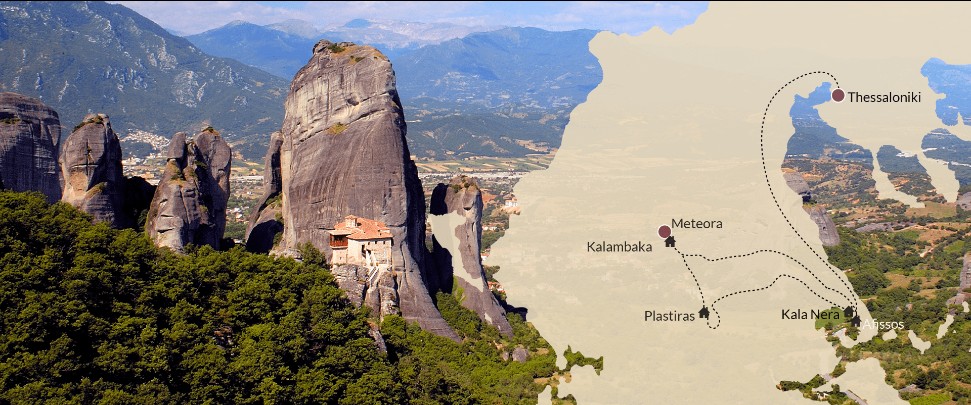 De Meteora-kloosters zijn gelegen in het hart van Griekenland. Vanaf de oostkust is het twee uur rijden naar de Meteora-kloosters. Stefanos Stefanou heeft een bijzondere reis voor u samengesteld waarin u een vakantie op Pilion combineert met een bezoek aan de Meteora-kloosters. In de buurt van de Meteora-kloosters vindt u verschillende bergdorpen, zoals Pertouli en Elati, die liggen in een gebied dat wel Klein Zwitserland wordt genoemd.